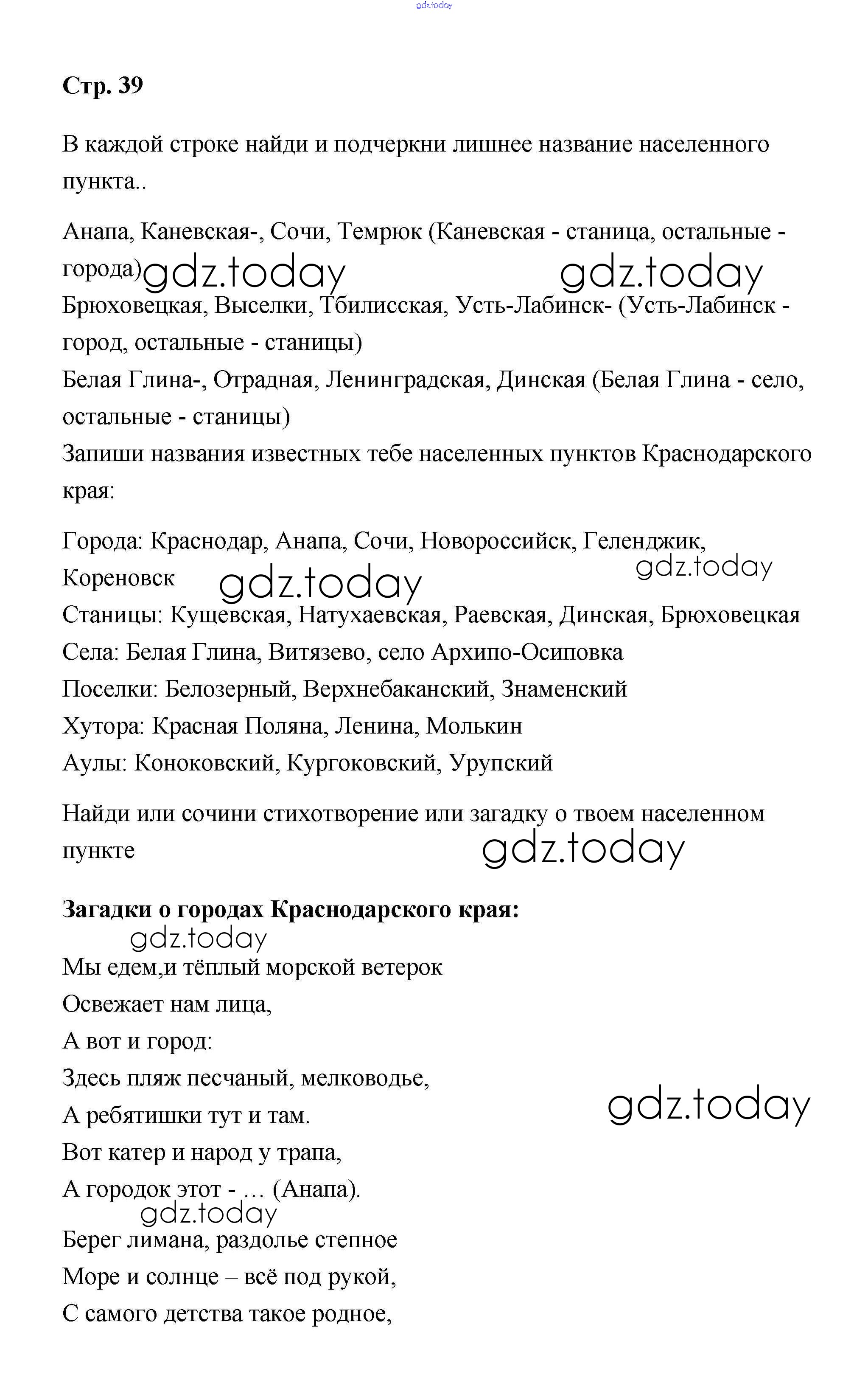 На страницах сайта gdz.today вы найдете учебный и вспомогательный материал, направленный на улучшения знаний школьной программы. ГДЗ - онлайн мир знаний Страницы (решение) 39 Рабочей тетради по Кубановедению для 2 класса Еременко Перспективы образования 2020