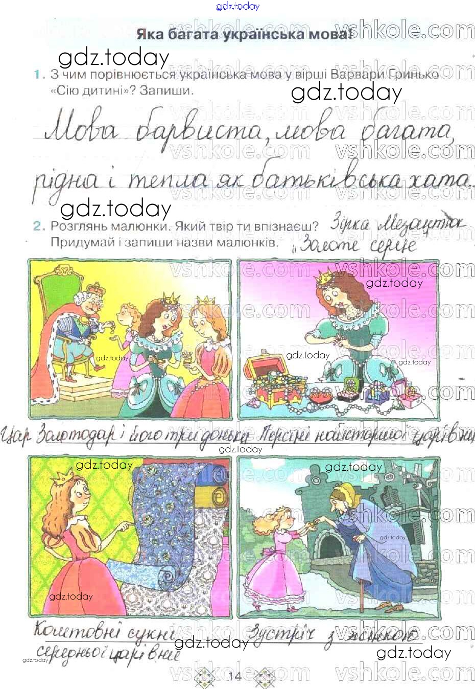 Ответы к Рішення до Сторінки 14 Рабочей тетради по Литературе для 2 класса Савченко Орiон 2019