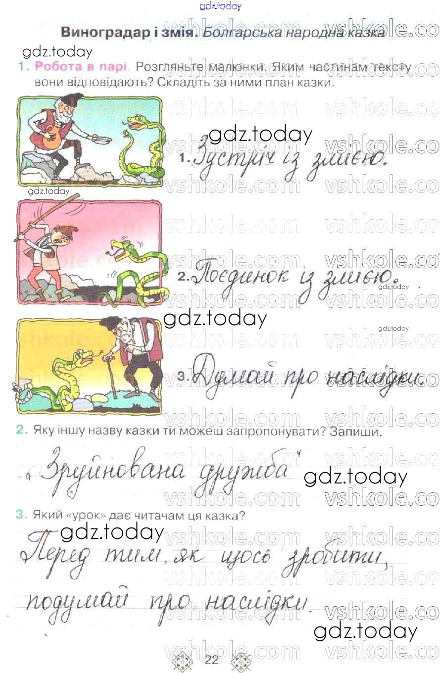 Ответы к Рішення до Сторінки 22 Рабочей тетради по Литературе для 2 класса Савченко Орiон 2019