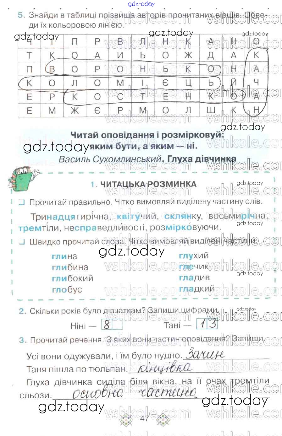 Ответы к Рішення до Сторінки 47 Рабочей тетради по Литературе для 2 класса Савченко Орiон 2019