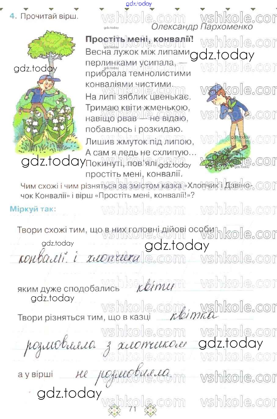 Ответы к Рішення до Сторінки 71 Рабочей тетради по Литературе для 2 класса Савченко Орiон 2019