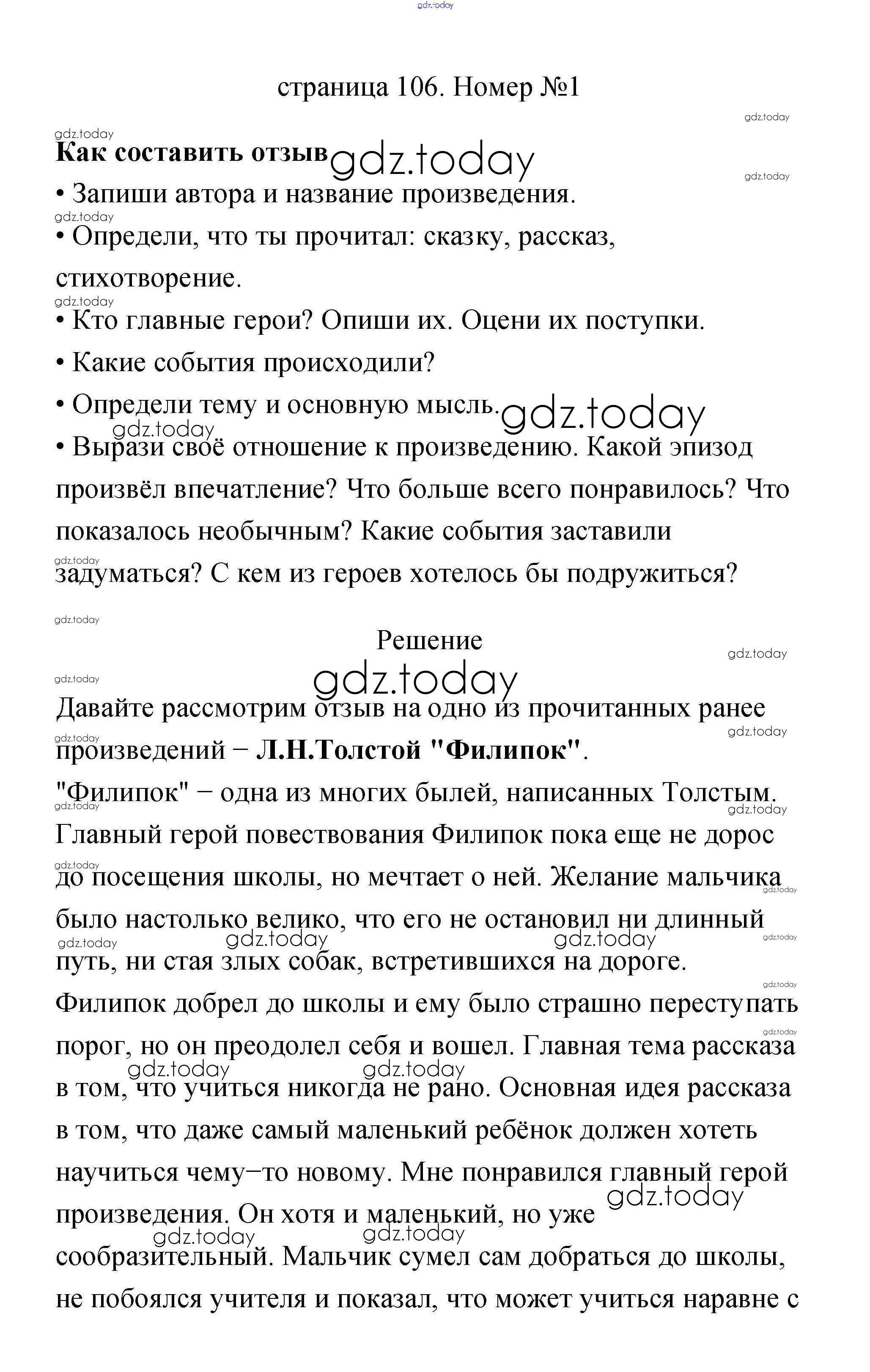 На страницах сайта gdz.today вы найдете учебный и вспомогательный материал, направленный на улучшения знаний школьной программы. ГДЗ - онлайн мир знаний Решение к части 1 (Страницы) 106 Учебнику по Литературному чтению для 2 класса Климанова, Горецкий Просвещение Школа России 2018