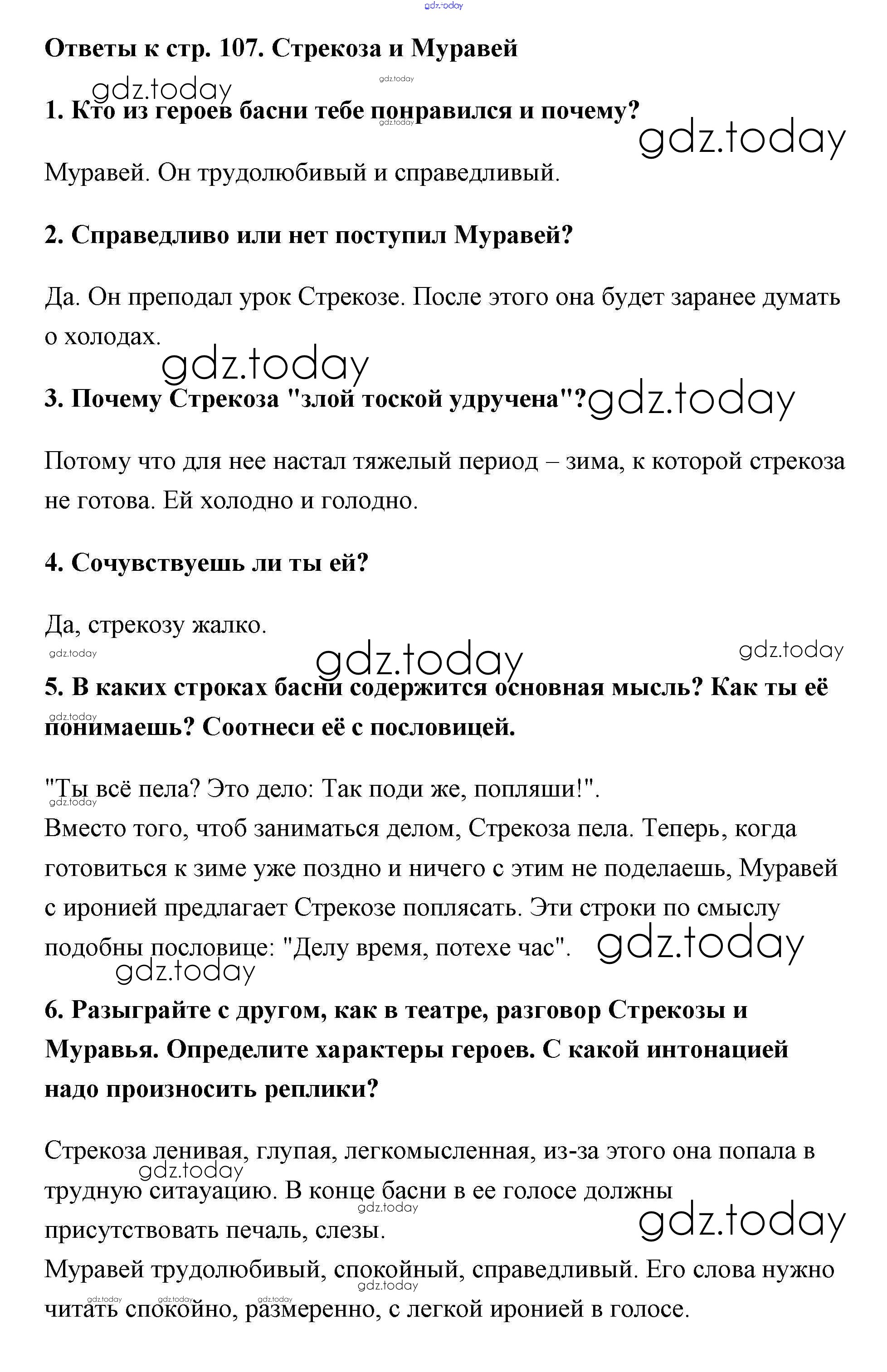 Ответы к Решение к части 1 (Страницы) 107 Учебнику по Литературному чтению для 2 класса Климанова, Горецкий Просвещение Школа России 2018