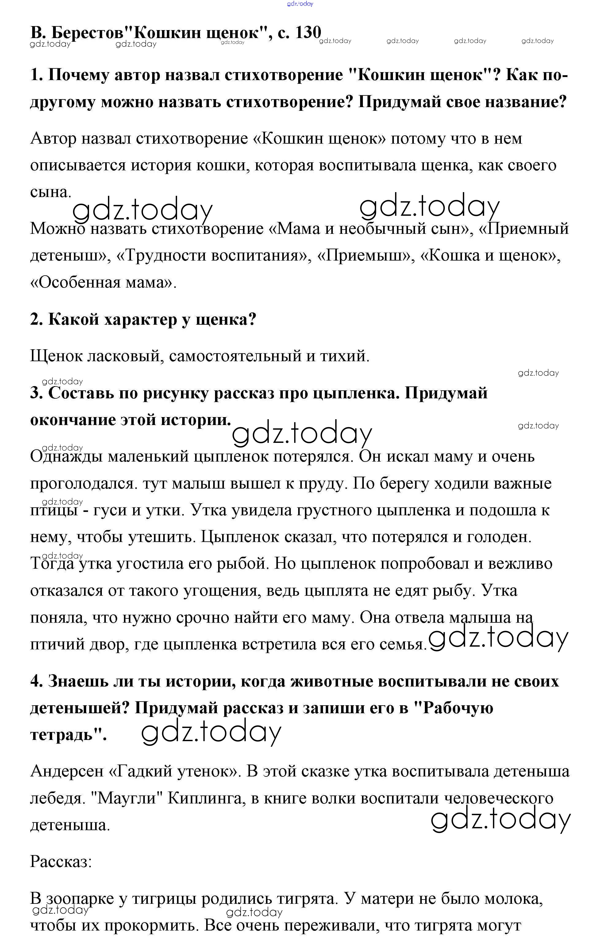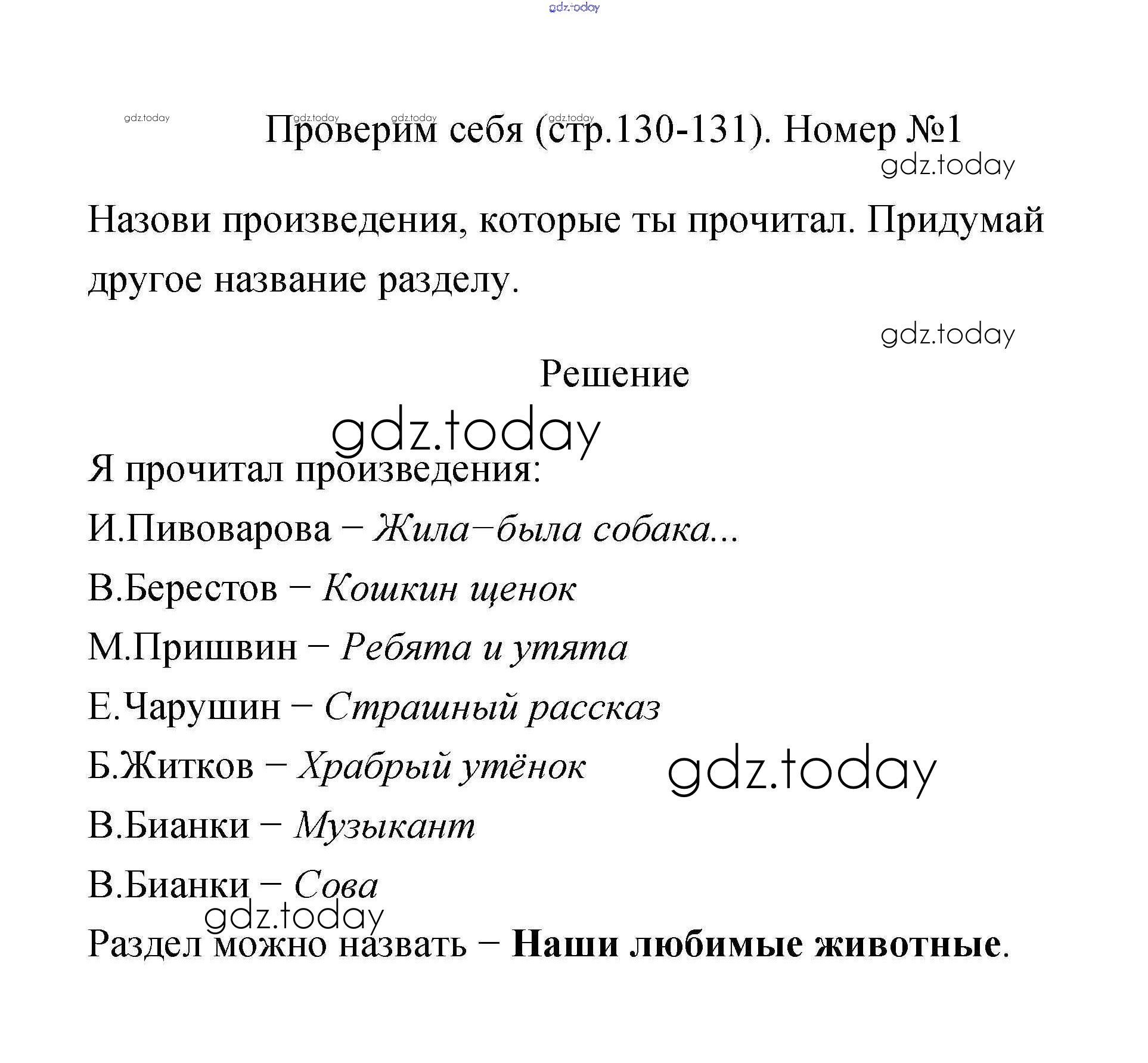 На страницах сайта gdz.today вы найдете учебный и вспомогательный материал, направленный на улучшения знаний школьной программы. ГДЗ - онлайн мир знаний Решение к части 1 (Страницы) 130 Учебнику по Литературному чтению для 2 класса Климанова, Горецкий Просвещение Школа России 2018