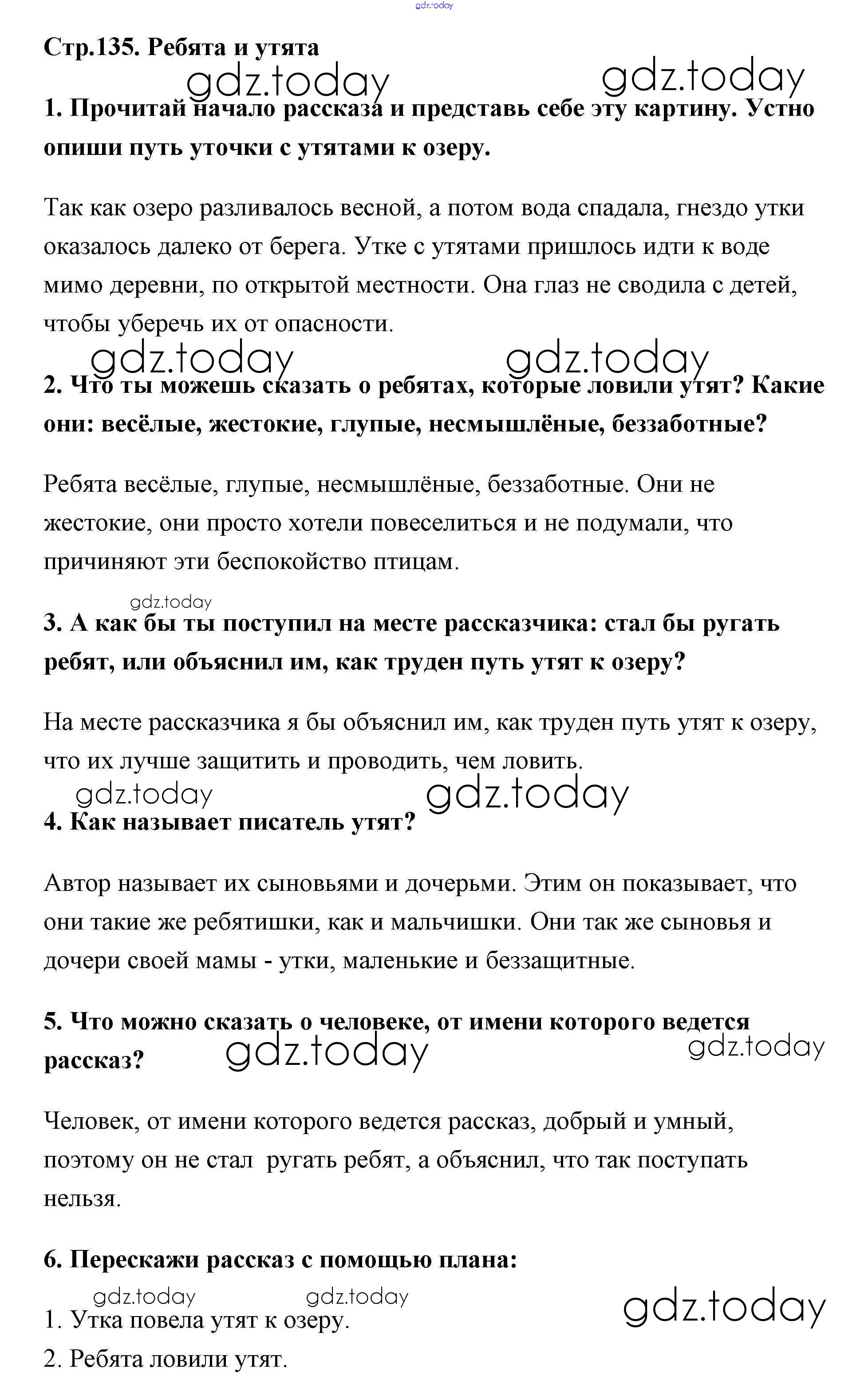 На страницах сайта gdz.today вы найдете учебный и вспомогательный материал, направленный на улучшения знаний школьной программы. ГДЗ - онлайн мир знаний Решение к части 1 (Страницы) 135 Учебнику по Литературному чтению для 2 класса Климанова, Горецкий Просвещение Школа России 2018