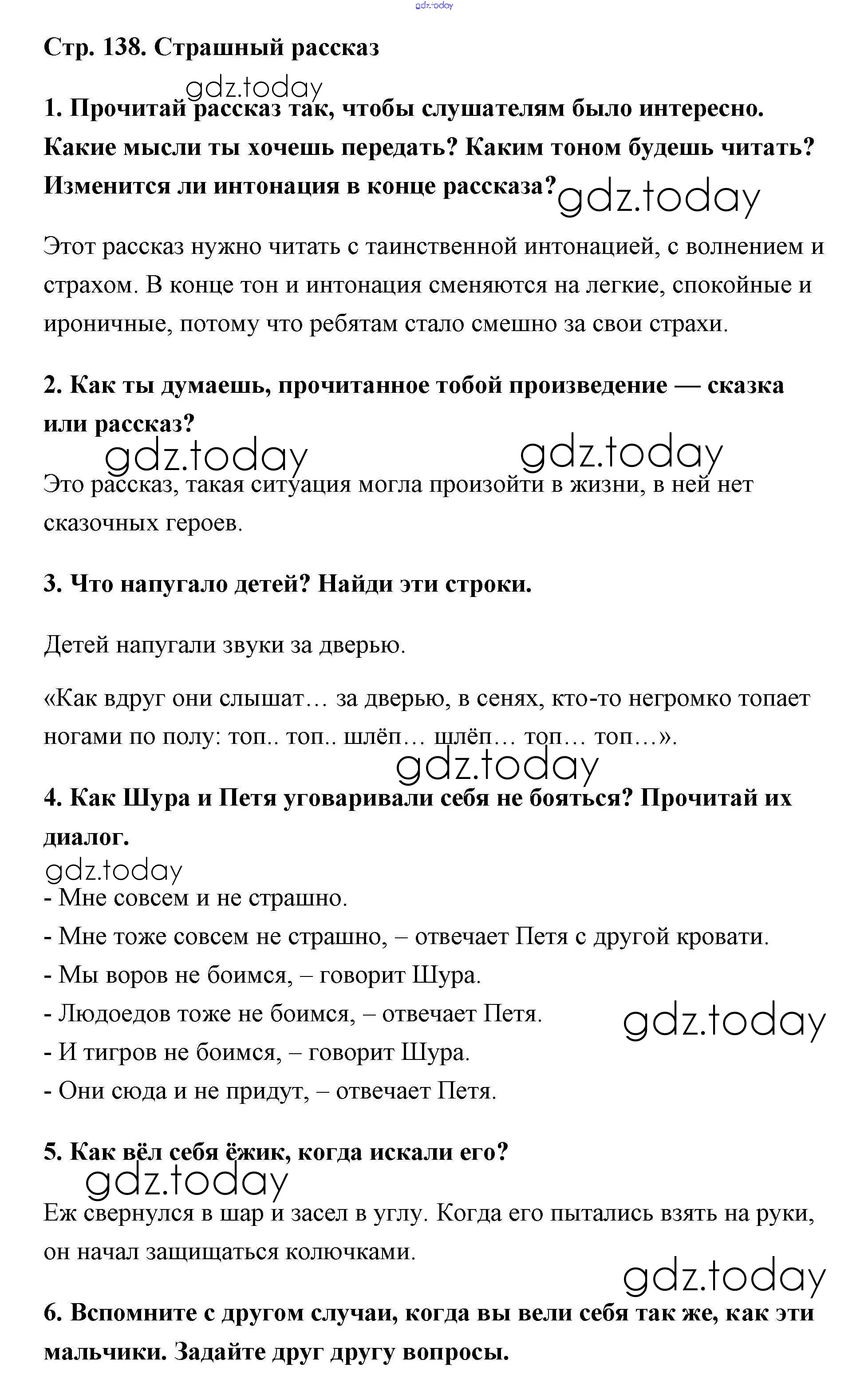 На страницах сайта gdz.today вы найдете учебный и вспомогательный материал, направленный на улучшения знаний школьной программы. ГДЗ - онлайн мир знаний Решение к части 1 (Страницы) 138 Учебнику по Литературному чтению для 2 класса Климанова, Горецкий Просвещение Школа России 2018