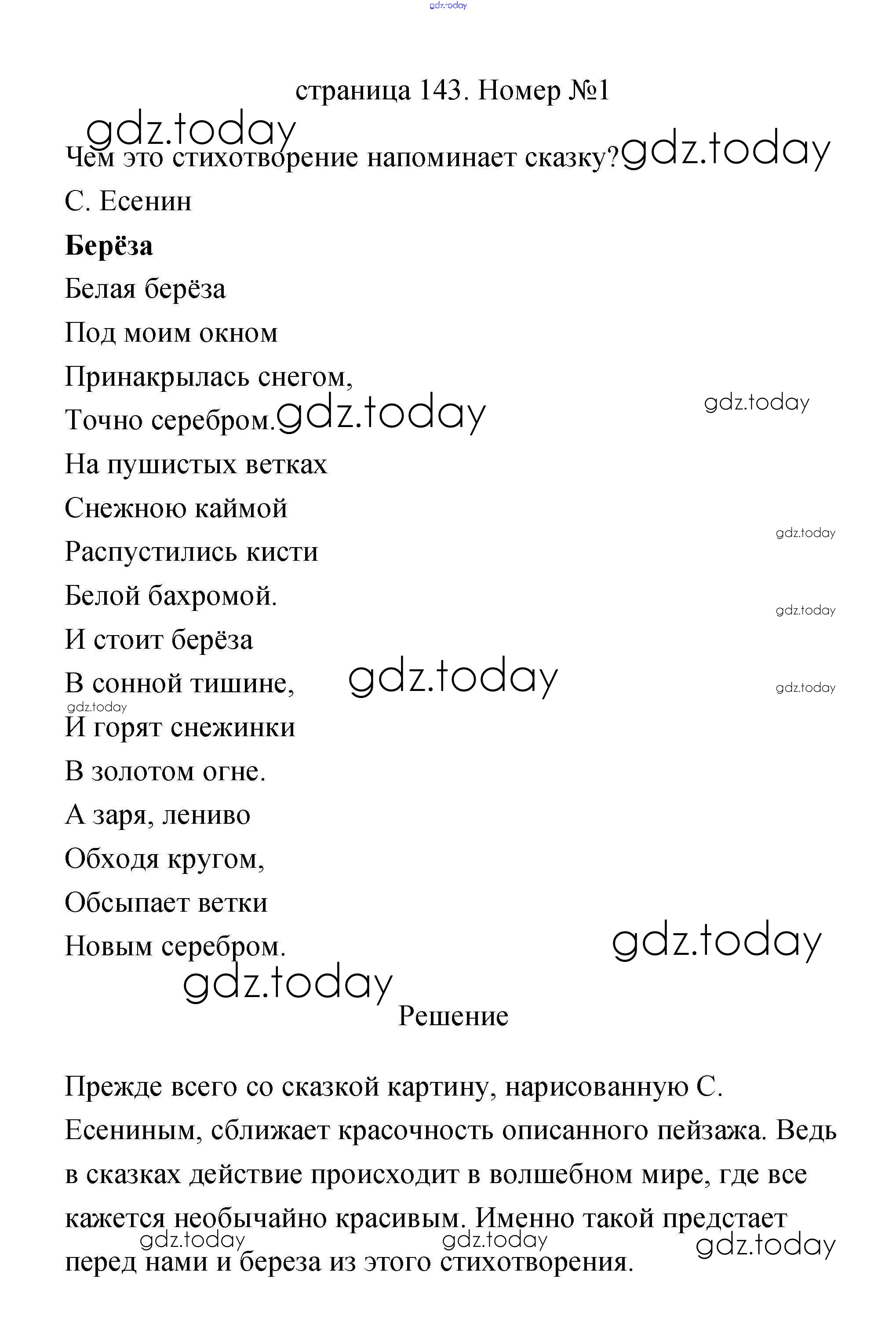 Ответы к Решение к части 1 (Страницы) 143 Учебнику по Литературному чтению для 2 класса Климанова, Горецкий Просвещение Школа России 2018