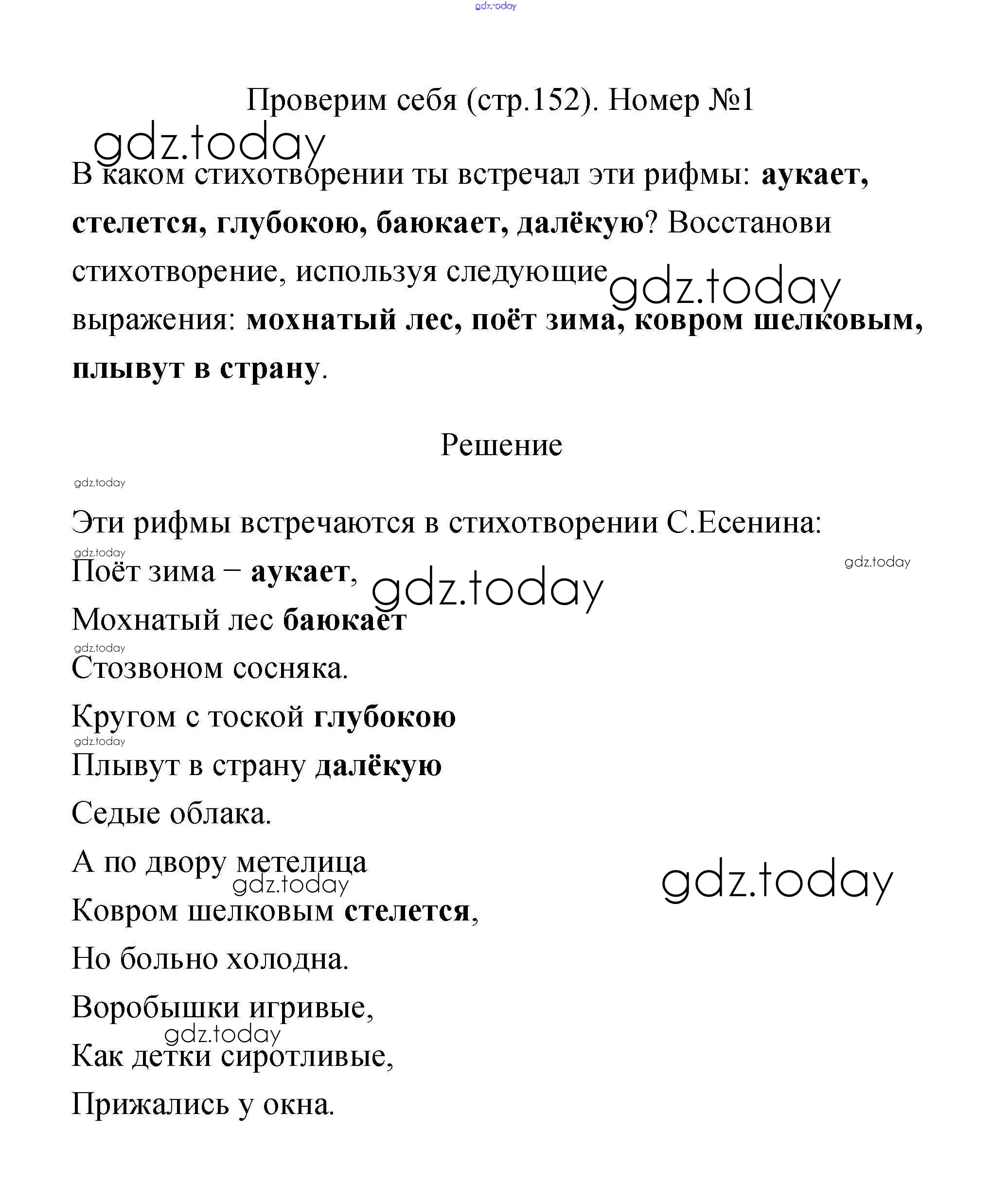 Ответы к Решение к части 1 (Страницы) 152 Учебнику по Литературному чтению для 2 класса Климанова, Горецкий Просвещение Школа России 2018