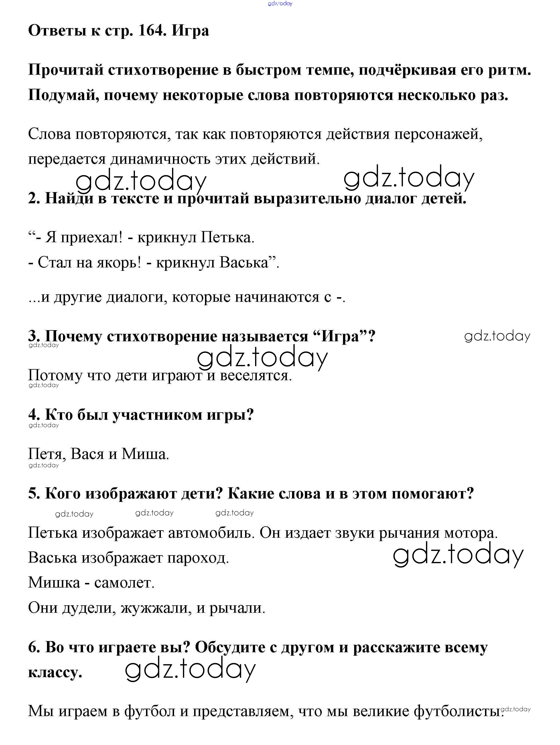 На страницах сайта gdz.today вы найдете учебный и вспомогательный материал, направленный на улучшения знаний школьной программы. ГДЗ - онлайн мир знаний Решение к части 1 (Страницы) 164 Учебнику по Литературному чтению для 2 класса Климанова, Горецкий Просвещение Школа России 2018