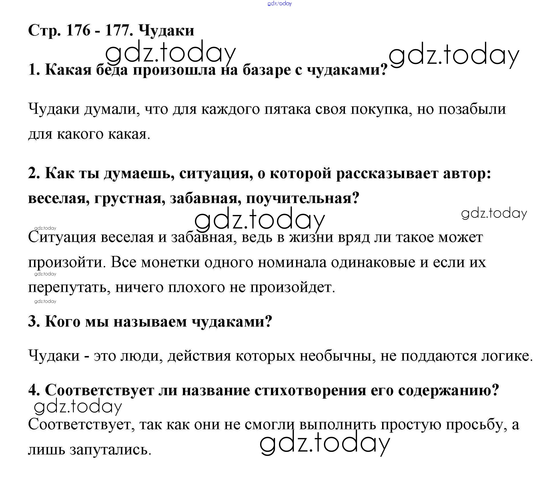 На страницах сайта gdz.today вы найдете учебный и вспомогательный материал, направленный на улучшения знаний школьной программы. ГДЗ - онлайн мир знаний Решение к части 1 (Страницы) 176-177 Учебнику по Литературному чтению для 2 класса Климанова, Горецкий Просвещение Школа России 2018