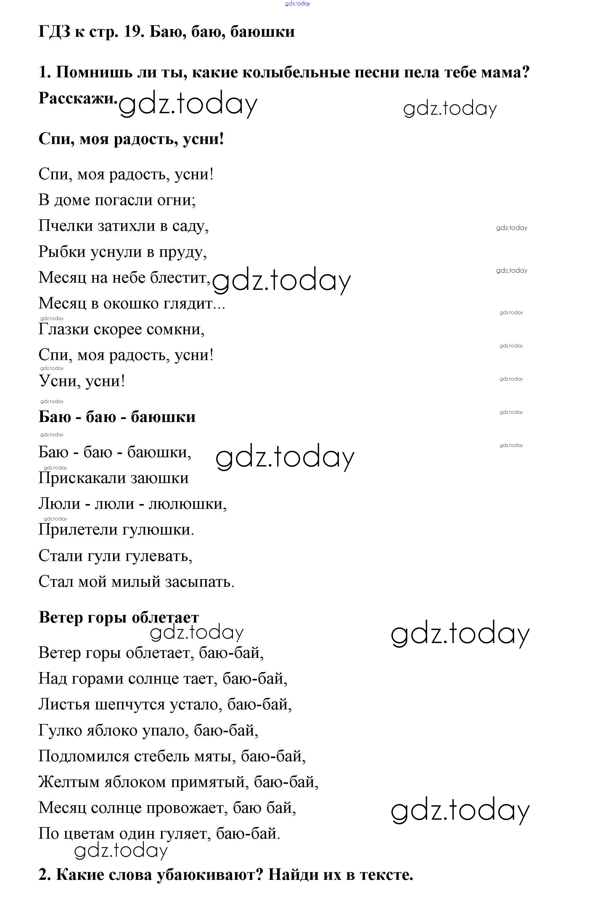 На страницах сайта gdz.today вы найдете учебный и вспомогательный материал, направленный на улучшения знаний школьной программы. ГДЗ - онлайн мир знаний Решение к части 1 (Страницы) 19 Учебнику по Литературному чтению для 2 класса Климанова, Горецкий Просвещение Школа России 2018