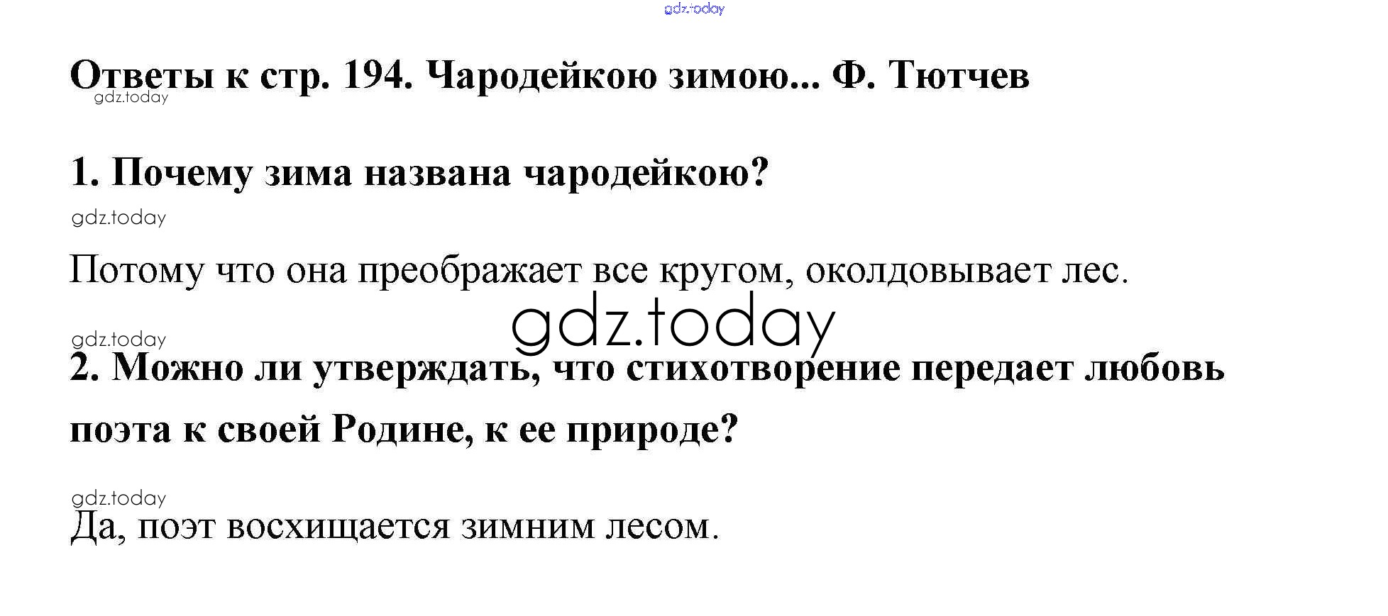 На страницах сайта gdz.today вы найдете учебный и вспомогательный материал, направленный на улучшения знаний школьной программы. ГДЗ - онлайн мир знаний Решение к части 1 (Страницы) 194 Учебнику по Литературному чтению для 2 класса Климанова, Горецкий Просвещение Школа России 2018