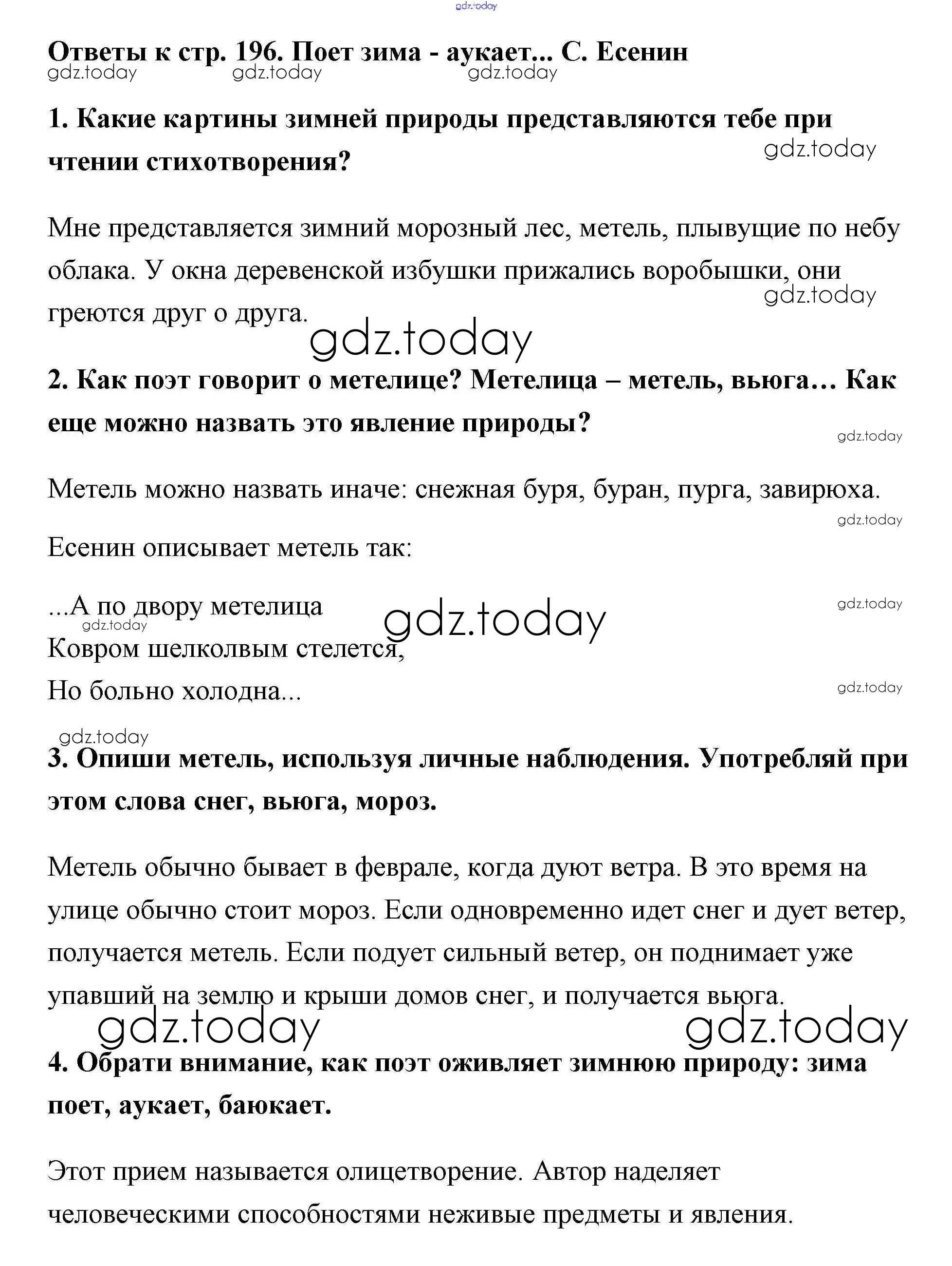 На страницах сайта gdz.today вы найдете учебный и вспомогательный материал, направленный на улучшения знаний школьной программы. ГДЗ - онлайн мир знаний Решение к части 1 (Страницы) 196 Учебнику по Литературному чтению для 2 класса Климанова, Горецкий Просвещение Школа России 2018