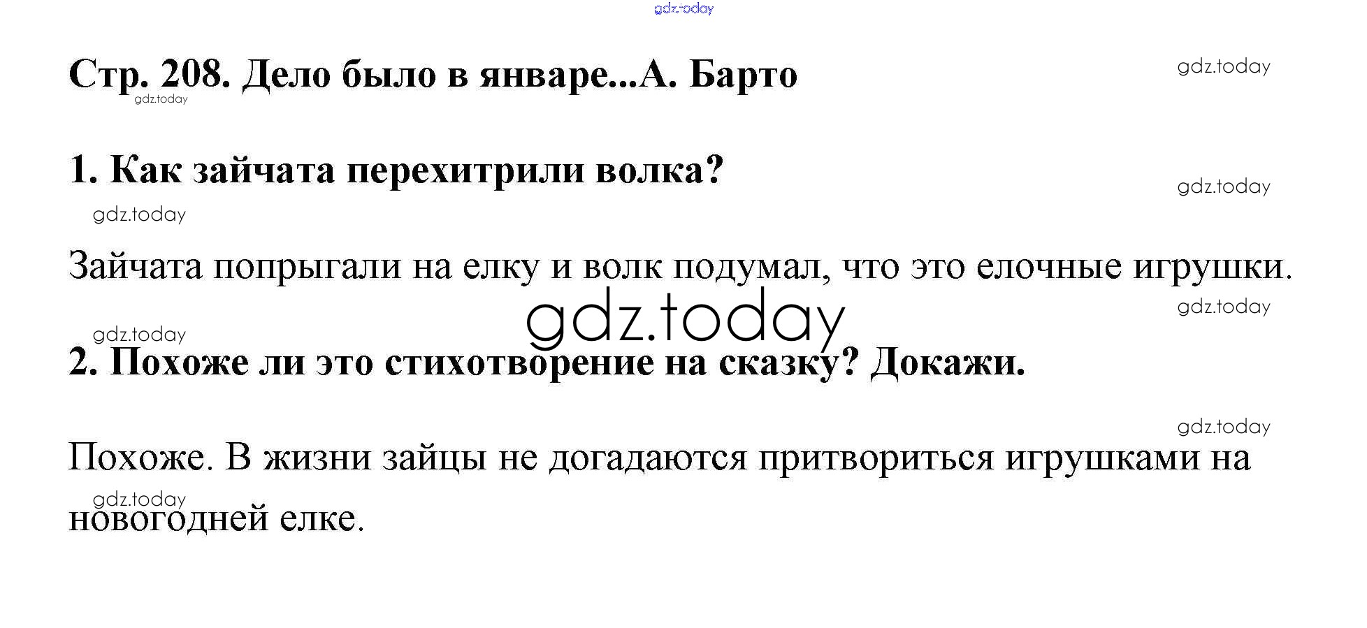 На страницах сайта gdz.today вы найдете учебный и вспомогательный материал, направленный на улучшения знаний школьной программы. ГДЗ - онлайн мир знаний Решение к части 1 (Страницы) 208 Учебнику по Литературному чтению для 2 класса Климанова, Горецкий Просвещение Школа России 2018