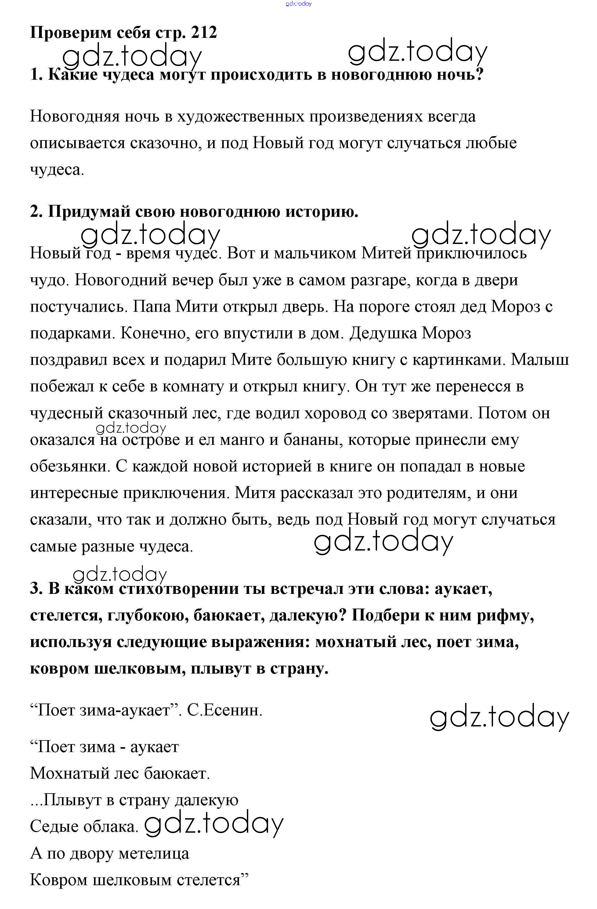 Ответы к Решение к части 1 (Страницы) 212 Учебнику по Литературному чтению для 2 класса Климанова, Горецкий Просвещение Школа России 2018