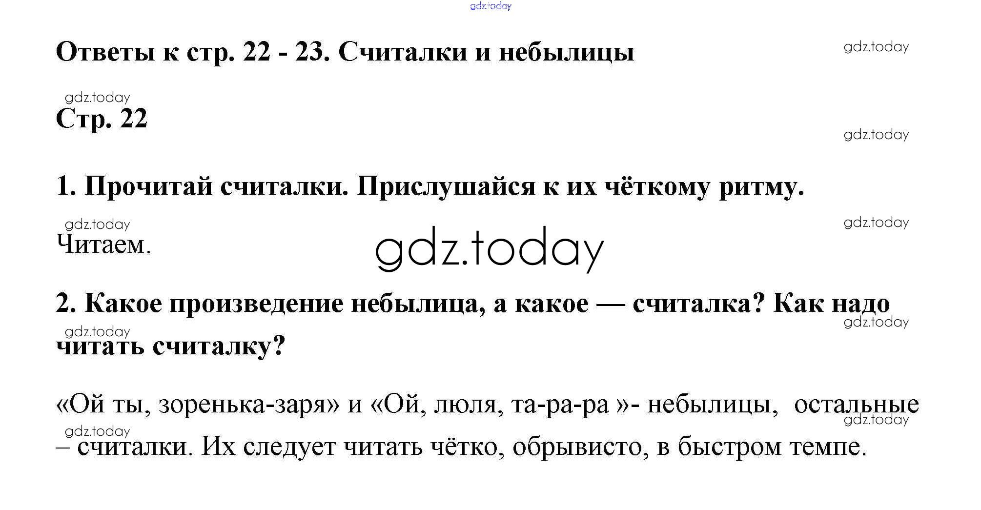 На страницах сайта gdz.today вы найдете учебный и вспомогательный материал, направленный на улучшения знаний школьной программы. ГДЗ - онлайн мир знаний Решение к части 1 (Страницы) 22 Учебнику по Литературному чтению для 2 класса Климанова, Горецкий Просвещение Школа России 2018