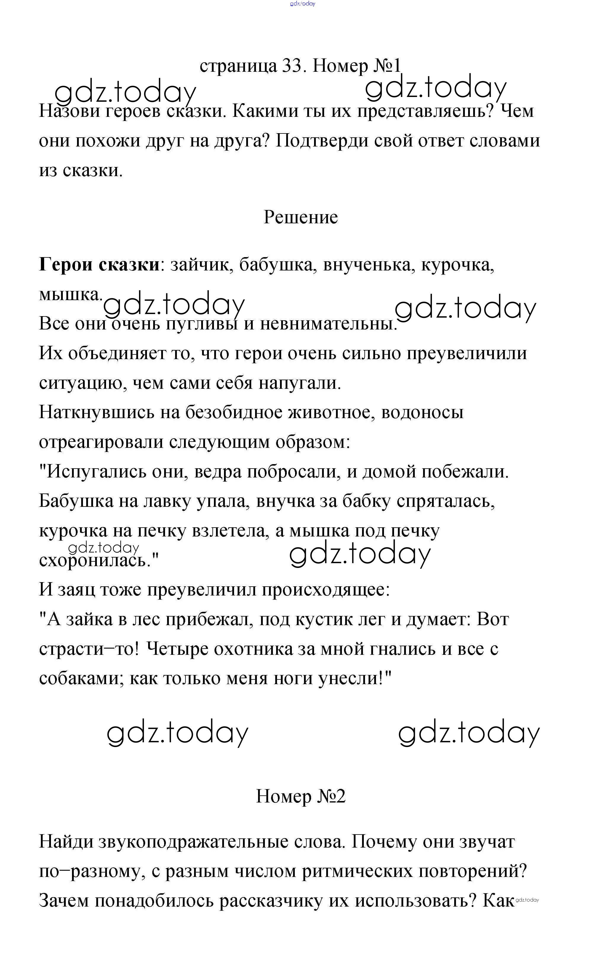 На страницах сайта gdz.today вы найдете учебный и вспомогательный материал, направленный на улучшения знаний школьной программы. ГДЗ - онлайн мир знаний Решение к части 1 (Страницы) 33 Учебнику по Литературному чтению для 2 класса Климанова, Горецкий Просвещение Школа России 2018
