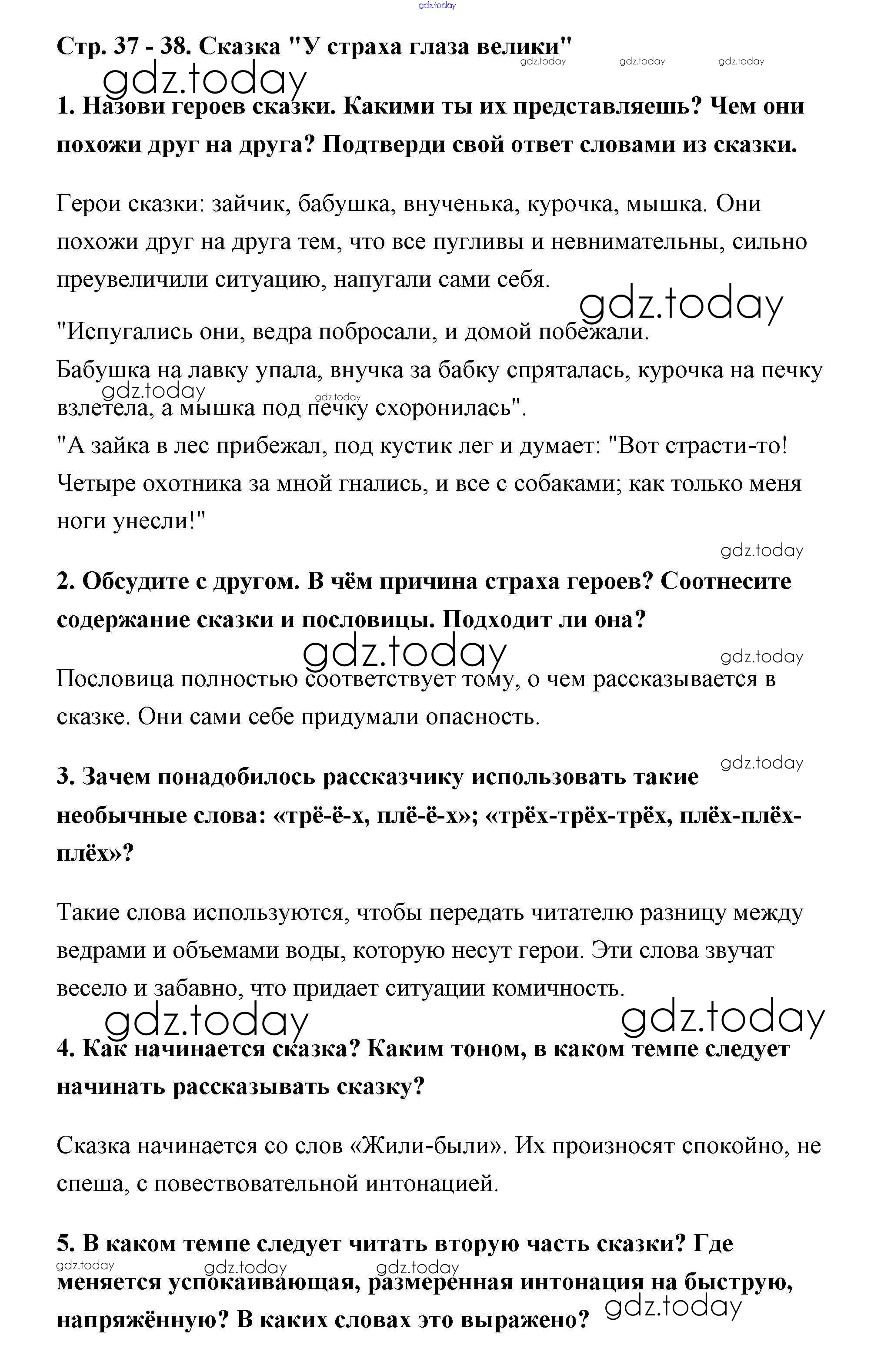 Ответы к Решение к части 1 (Страницы) 37-38 Учебнику по Литературному чтению для 2 класса Климанова, Горецкий Просвещение Школа России 2018