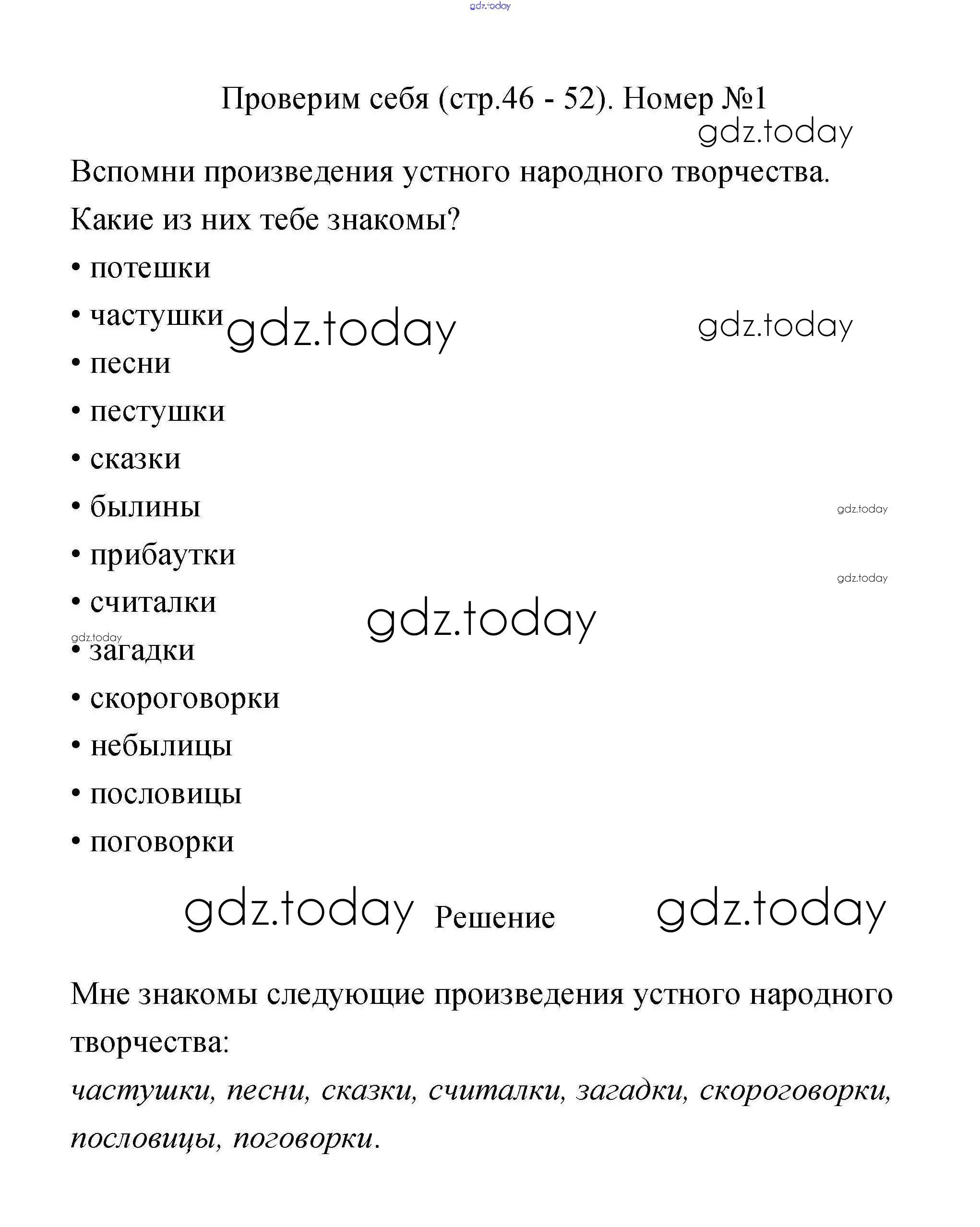 На страницах сайта gdz.today вы найдете учебный и вспомогательный материал, направленный на улучшения знаний школьной программы. ГДЗ - онлайн мир знаний Решение к части 1 (Страницы) 46 Учебнику по Литературному чтению для 2 класса Климанова, Горецкий Просвещение Школа России 2018