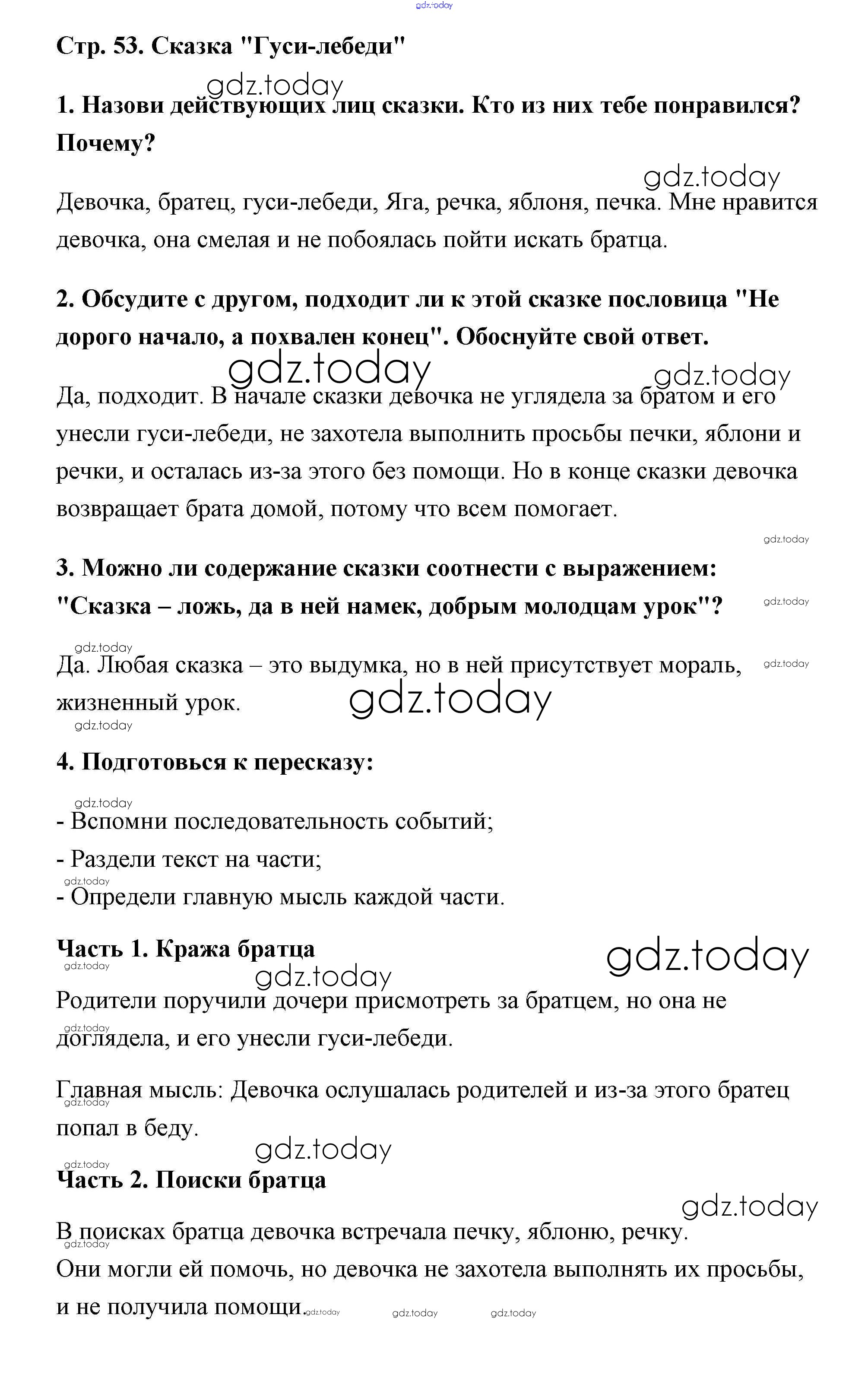 На страницах сайта gdz.today вы найдете учебный и вспомогательный материал, направленный на улучшения знаний школьной программы. ГДЗ - онлайн мир знаний Решение к части 1 (Страницы) 53 Учебнику по Литературному чтению для 2 класса Климанова, Горецкий Просвещение Школа России 2018