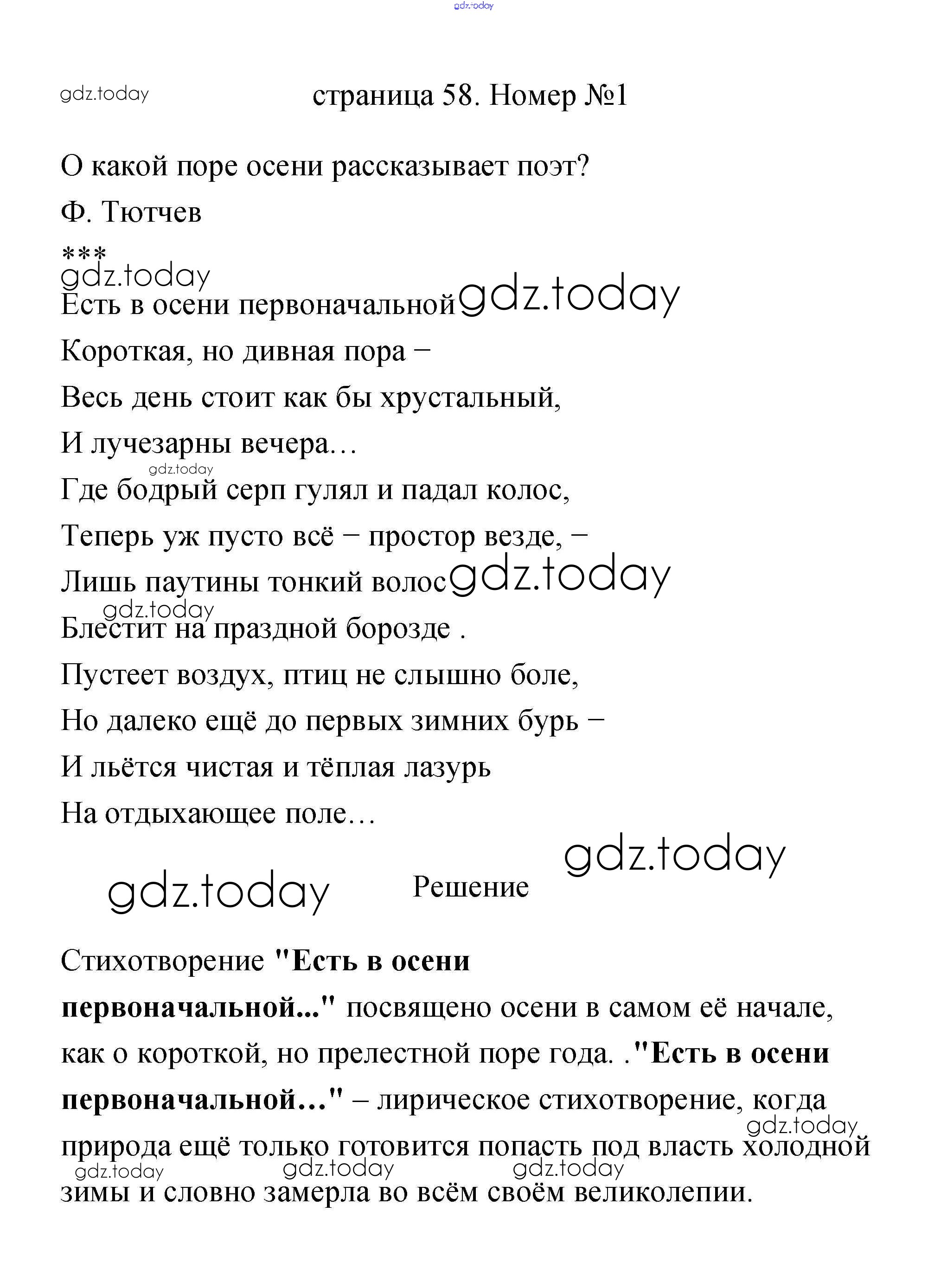 На страницах сайта gdz.today вы найдете учебный и вспомогательный материал, направленный на улучшения знаний школьной программы. ГДЗ - онлайн мир знаний Решение к части 1 (Страницы) 58 Учебнику по Литературному чтению для 2 класса Климанова, Горецкий Просвещение Школа России 2018