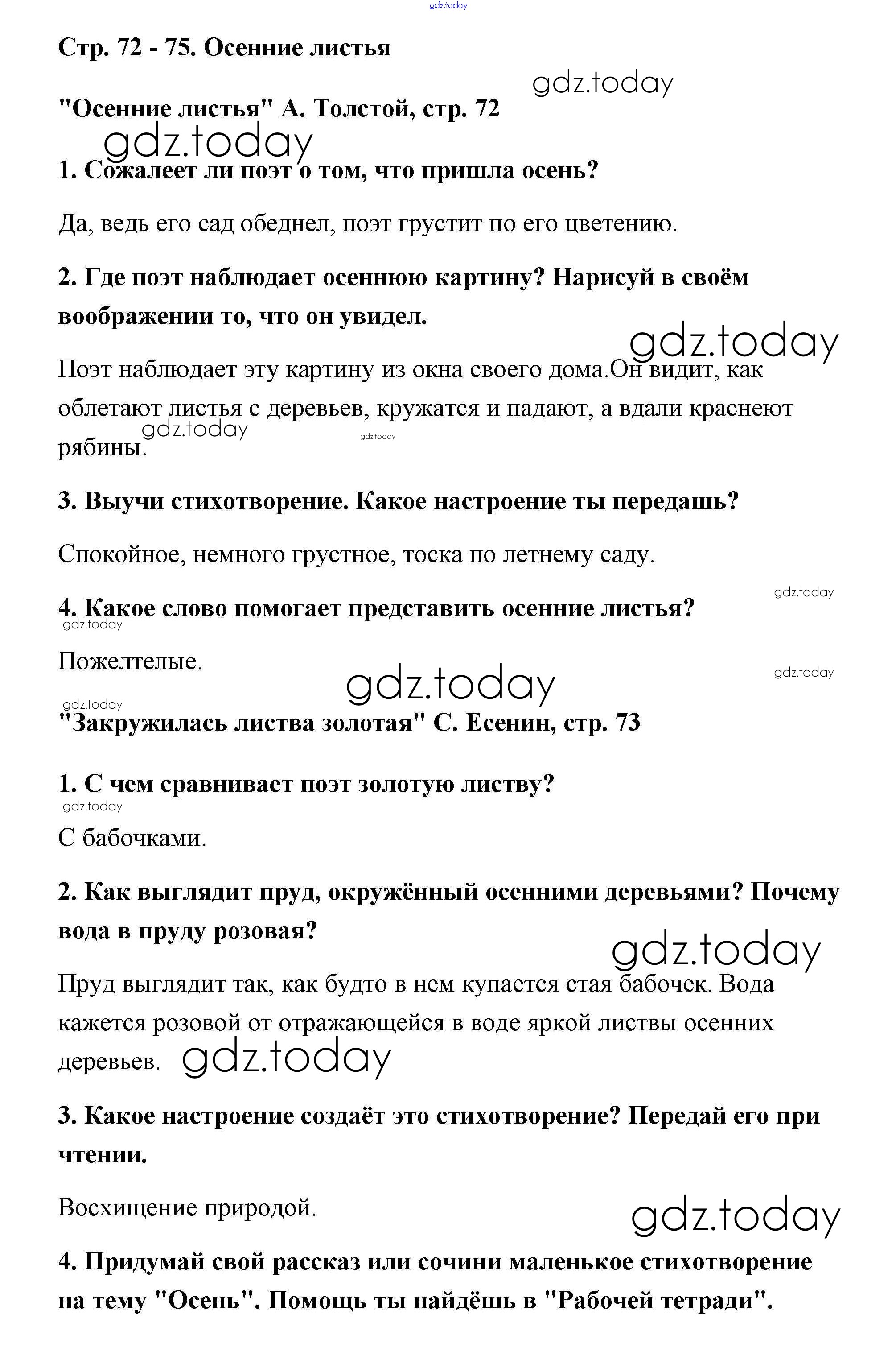 На страницах сайта gdz.today вы найдете учебный и вспомогательный материал, направленный на улучшения знаний школьной программы. ГДЗ - онлайн мир знаний Решение к части 1 (Страницы) 72 Учебнику по Литературному чтению для 2 класса Климанова, Горецкий Просвещение Школа России 2018