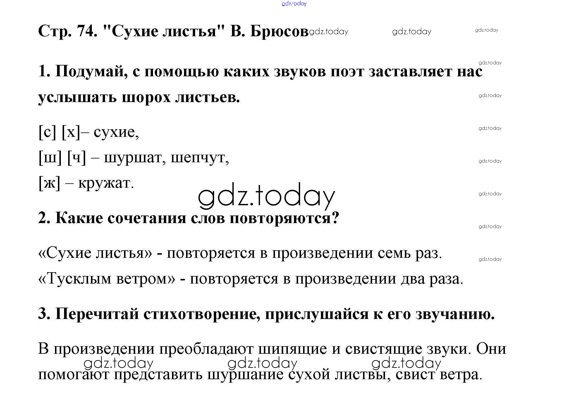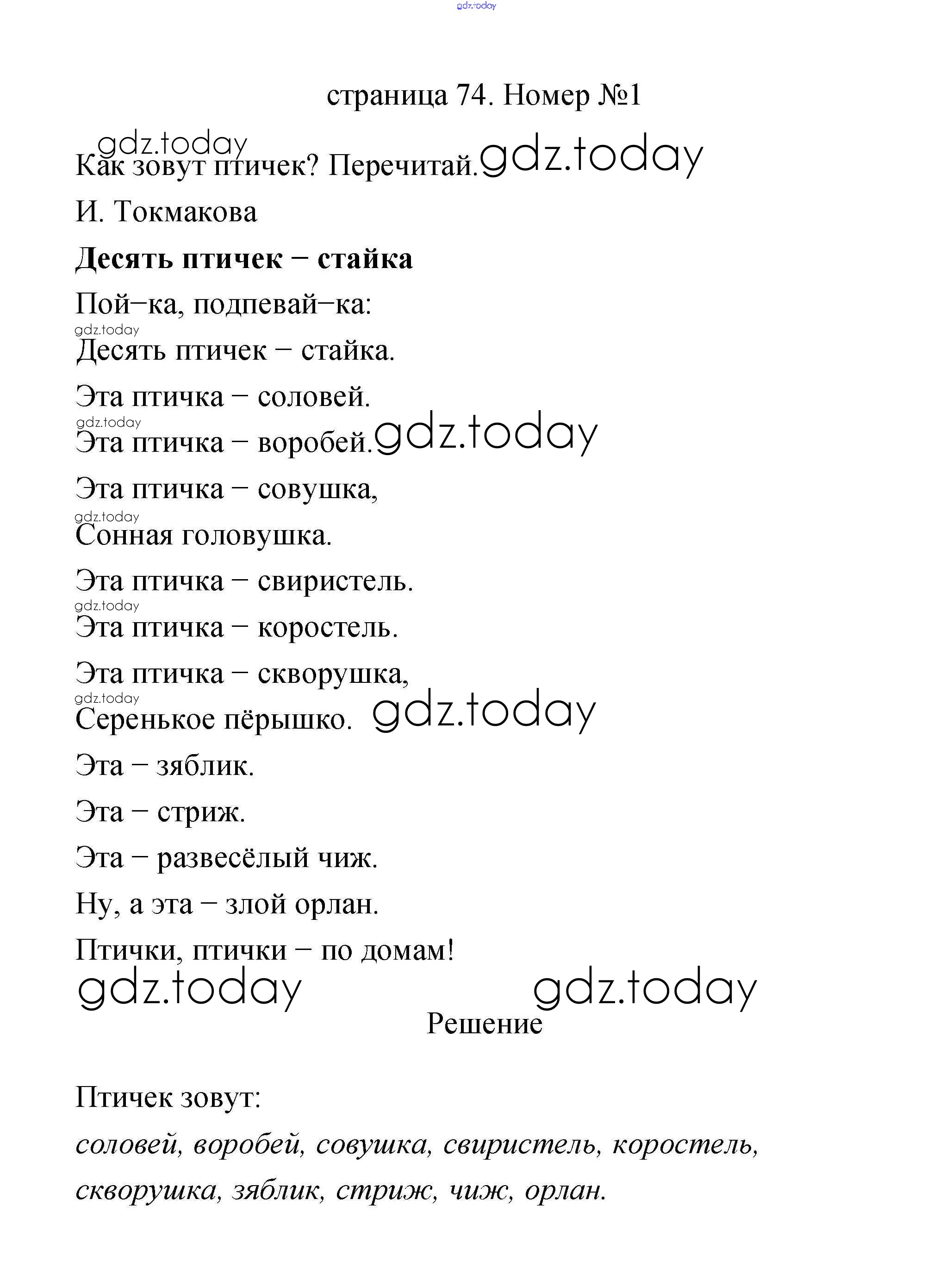 На страницах сайта gdz.today вы найдете учебный и вспомогательный материал, направленный на улучшения знаний школьной программы. ГДЗ - онлайн мир знаний Решение к части 1 (Страницы) 74 Учебнику по Литературному чтению для 2 класса Климанова, Горецкий Просвещение Школа России 2018