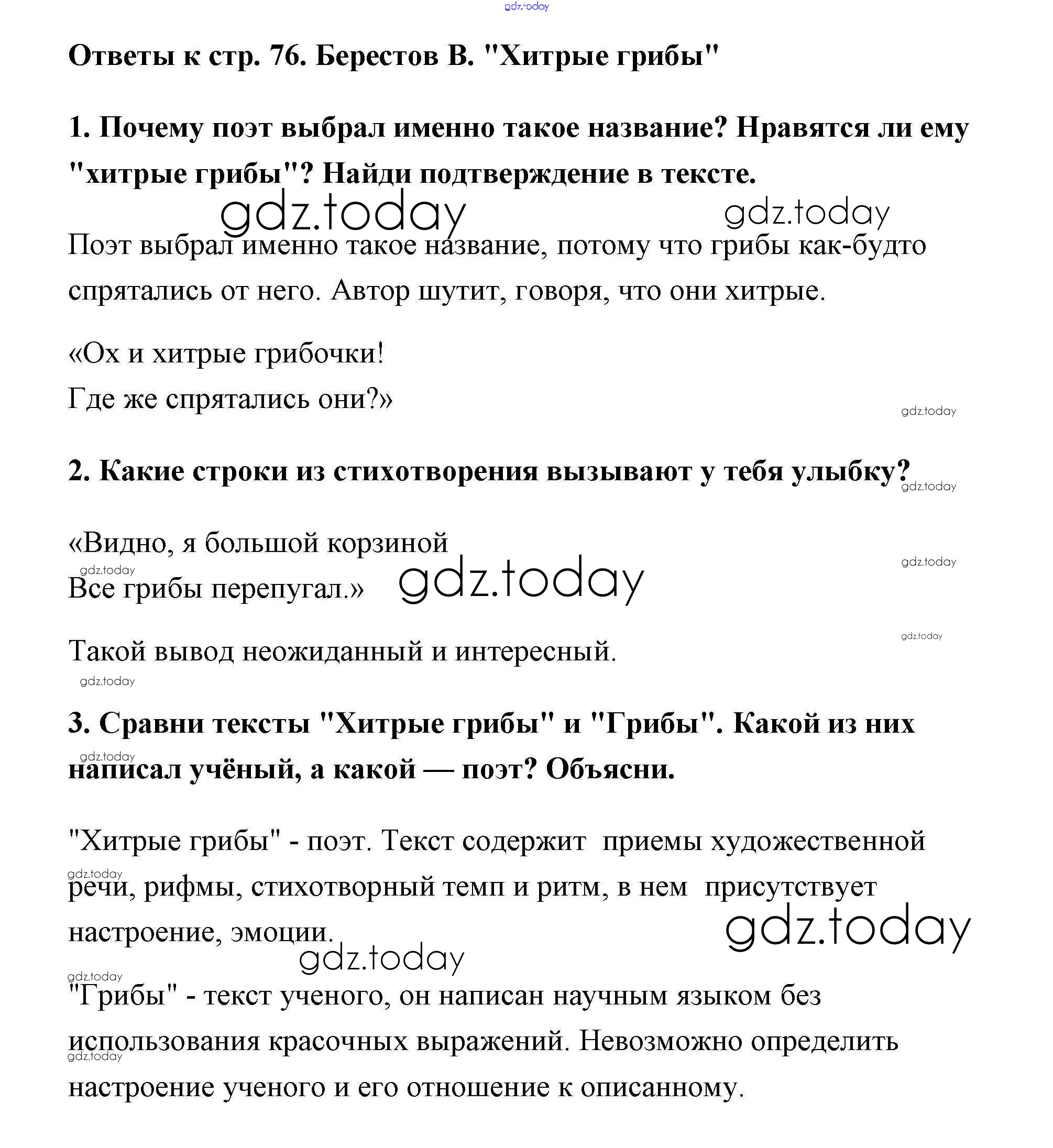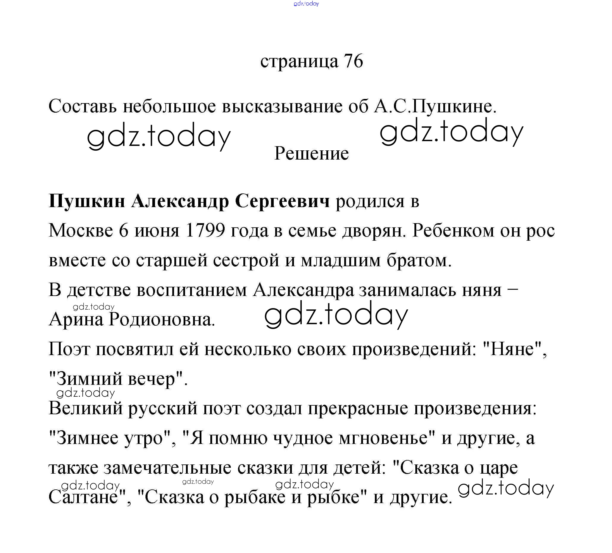 На страницах сайта gdz.today вы найдете учебный и вспомогательный материал, направленный на улучшения знаний школьной программы. ГДЗ - онлайн мир знаний Решение к части 1 (Страницы) 76 Учебнику по Литературному чтению для 2 класса Климанова, Горецкий Просвещение Школа России 2018