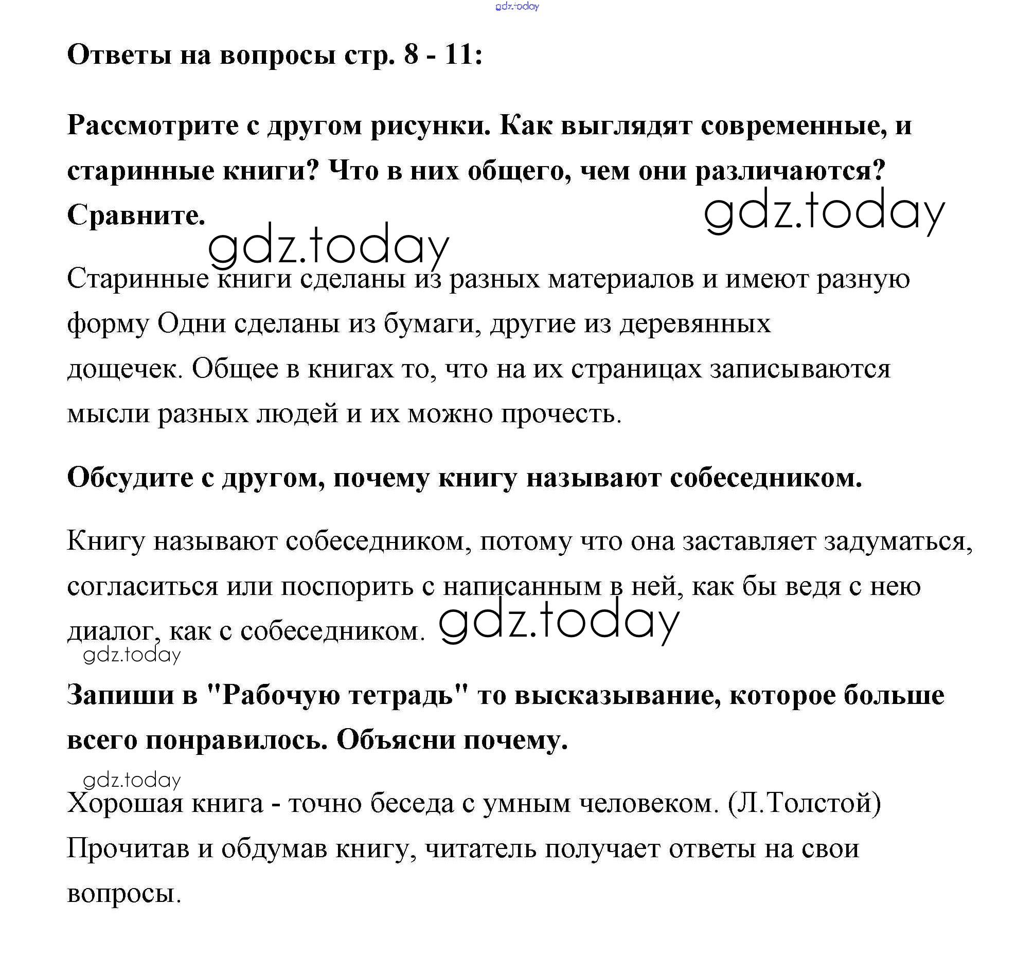 На страницах сайта gdz.today вы найдете учебный и вспомогательный материал, направленный на улучшения знаний школьной программы. ГДЗ - онлайн мир знаний Решение к части 1 (Страницы) 8-11 Учебнику по Литературному чтению для 2 класса Климанова, Горецкий Просвещение Школа России 2018