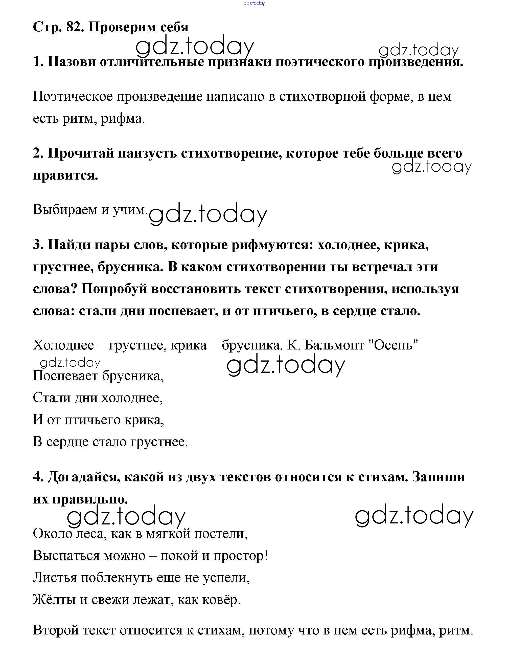 На страницах сайта gdz.today вы найдете учебный и вспомогательный материал, направленный на улучшения знаний школьной программы. ГДЗ - онлайн мир знаний Решение к части 1 (Страницы) 82 Учебнику по Литературному чтению для 2 класса Климанова, Горецкий Просвещение Школа России 2018