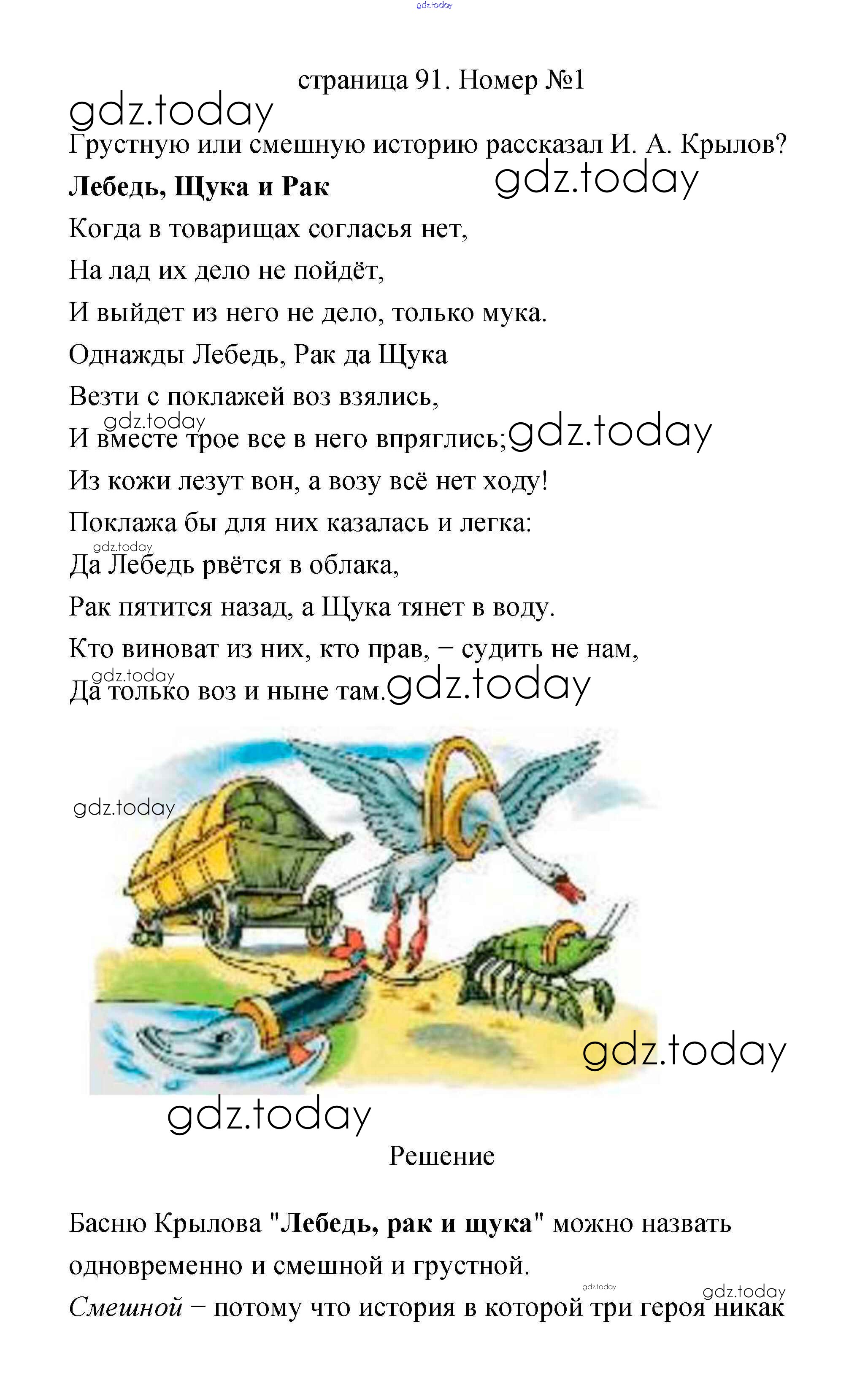 На страницах сайта gdz.today вы найдете учебный и вспомогательный материал, направленный на улучшения знаний школьной программы. ГДЗ - онлайн мир знаний Решение к части 1 (Страницы) 91 Учебнику по Литературному чтению для 2 класса Климанова, Горецкий Просвещение Школа России 2018