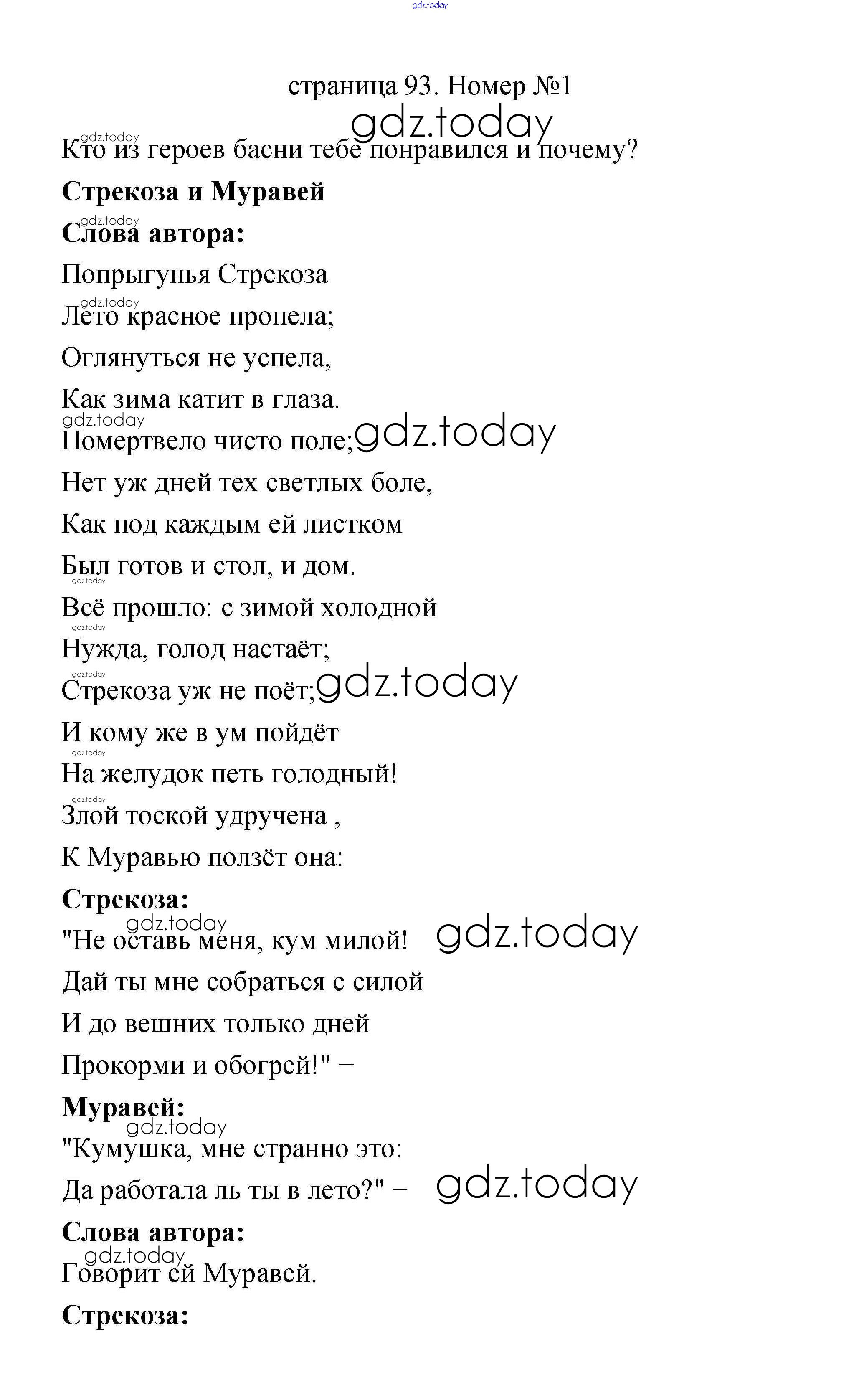 На страницах сайта gdz.today вы найдете учебный и вспомогательный материал, направленный на улучшения знаний школьной программы. ГДЗ - онлайн мир знаний Решение к части 1 (Страницы) 93 Учебнику по Литературному чтению для 2 класса Климанова, Горецкий Просвещение Школа России 2018