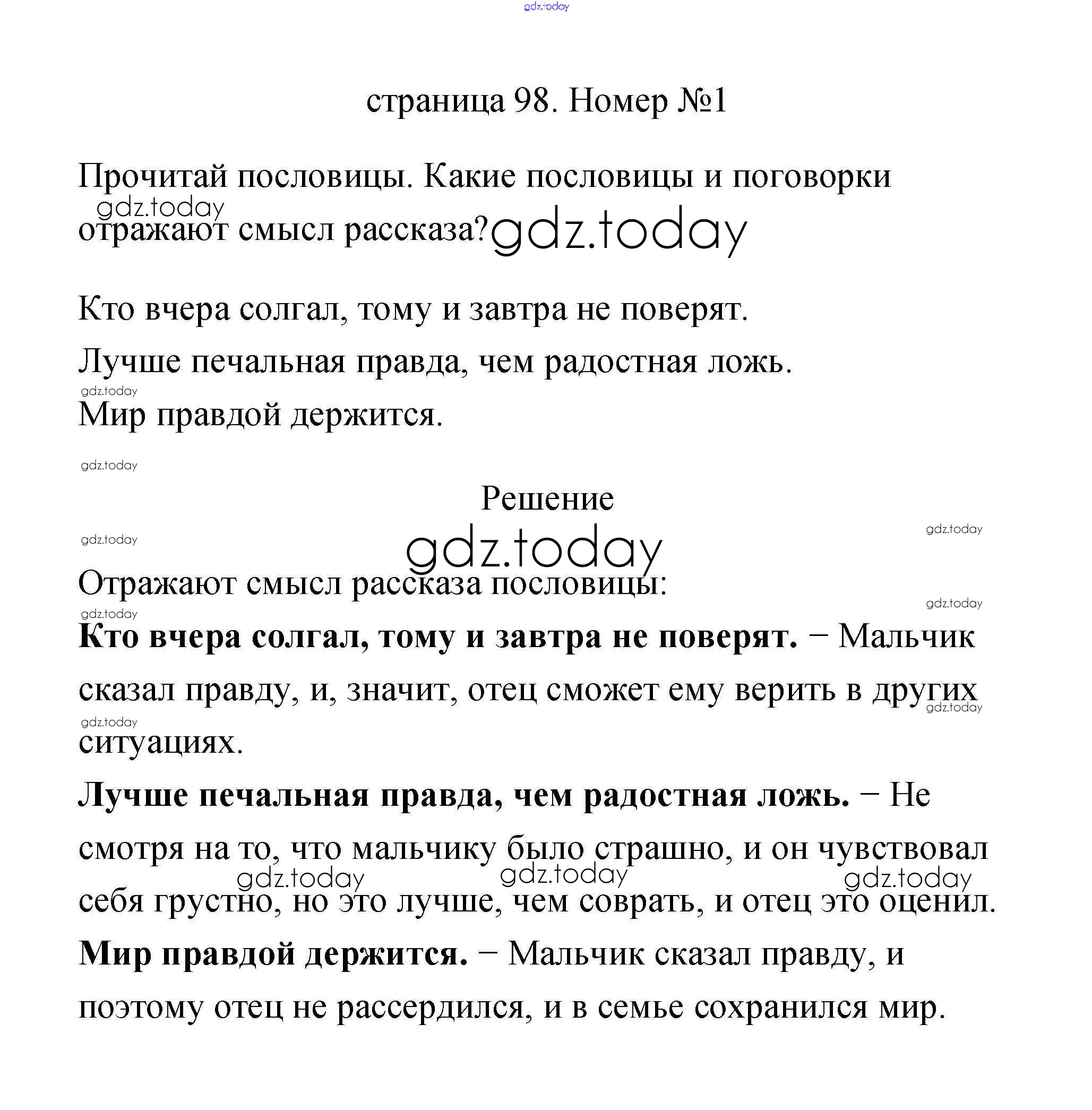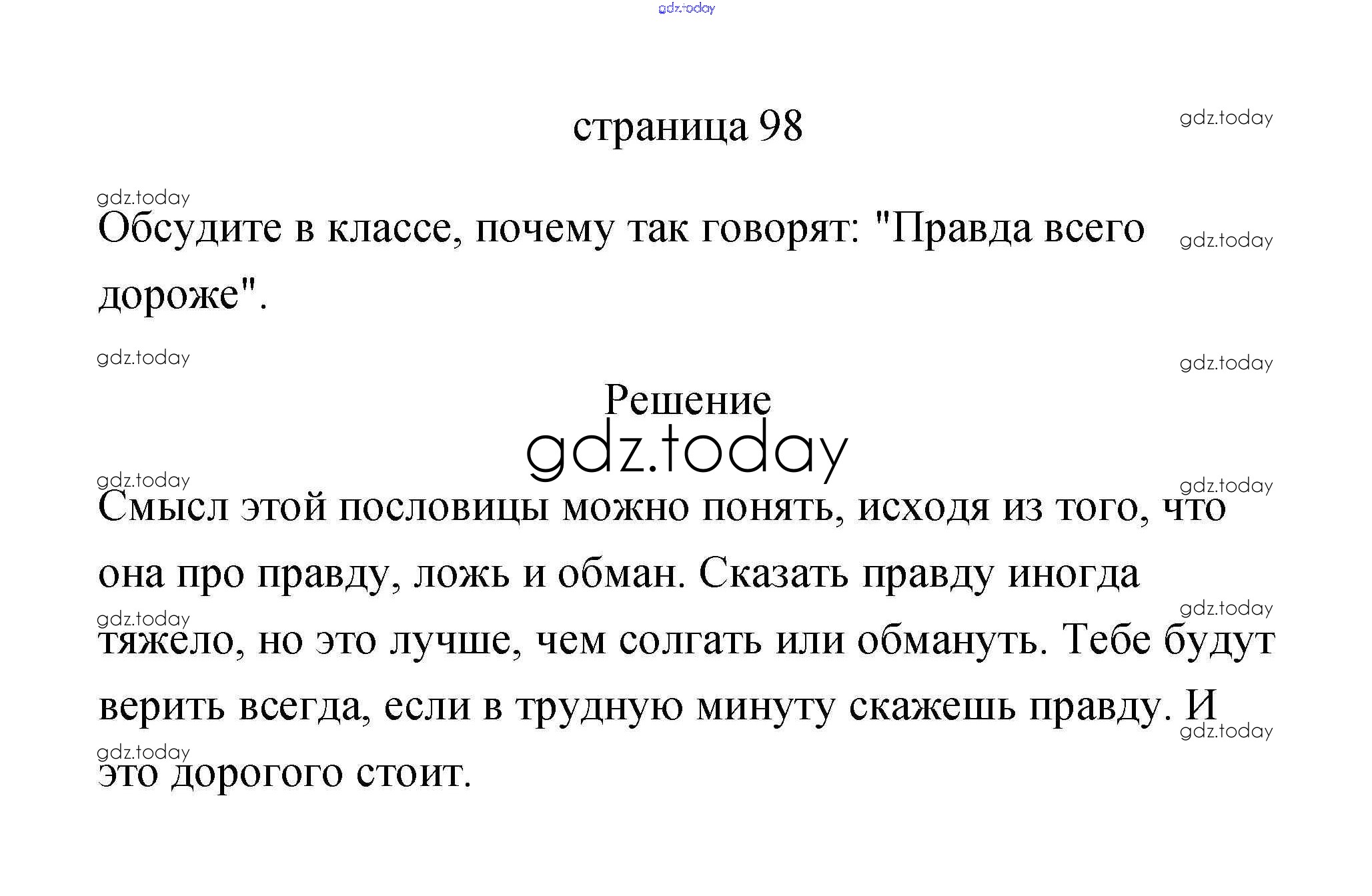 Ответы к Решение к части 1 (Страницы) 98 Учебнику по Литературному чтению для 2 класса Климанова, Горецкий Просвещение Школа России 2018