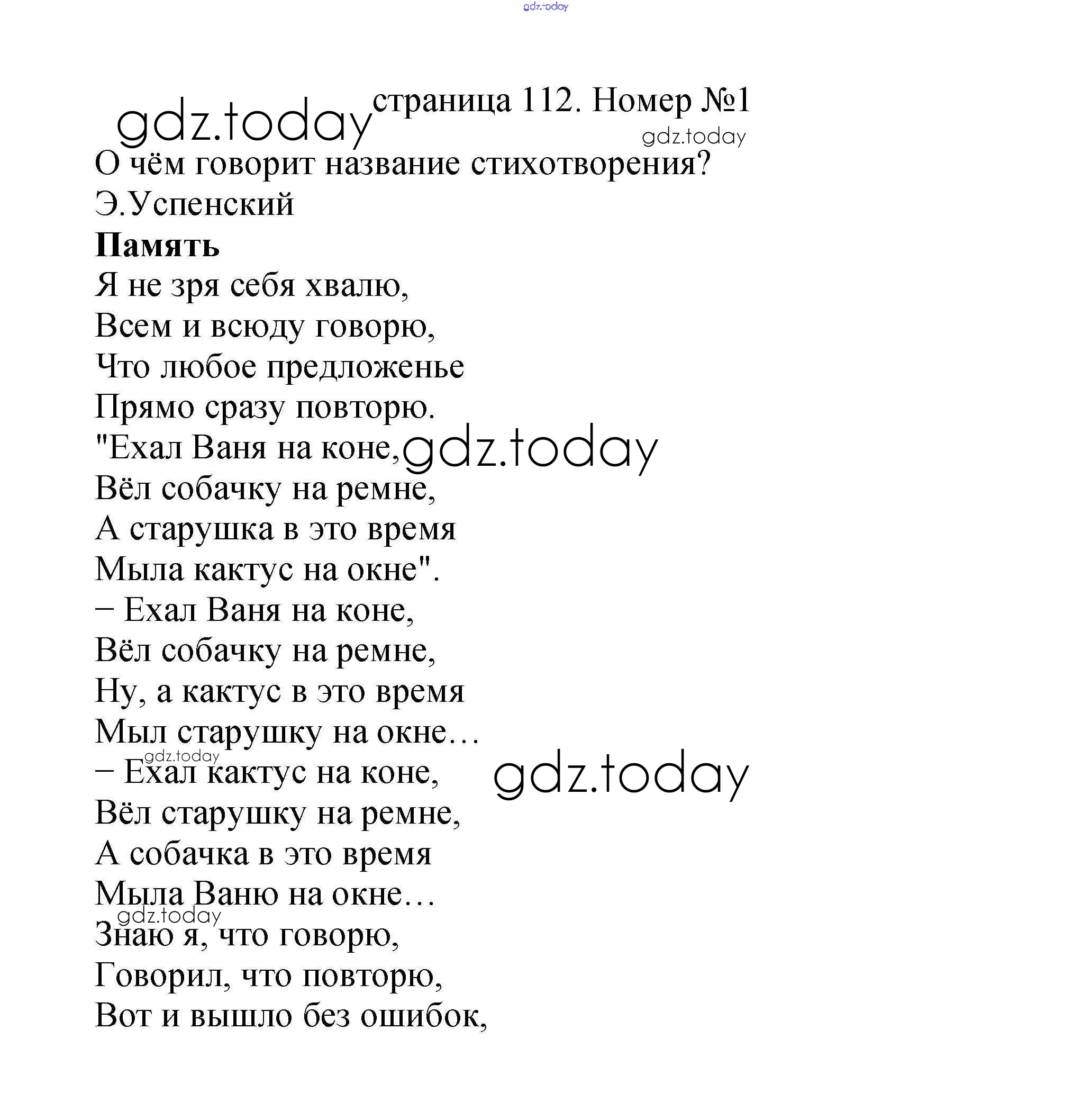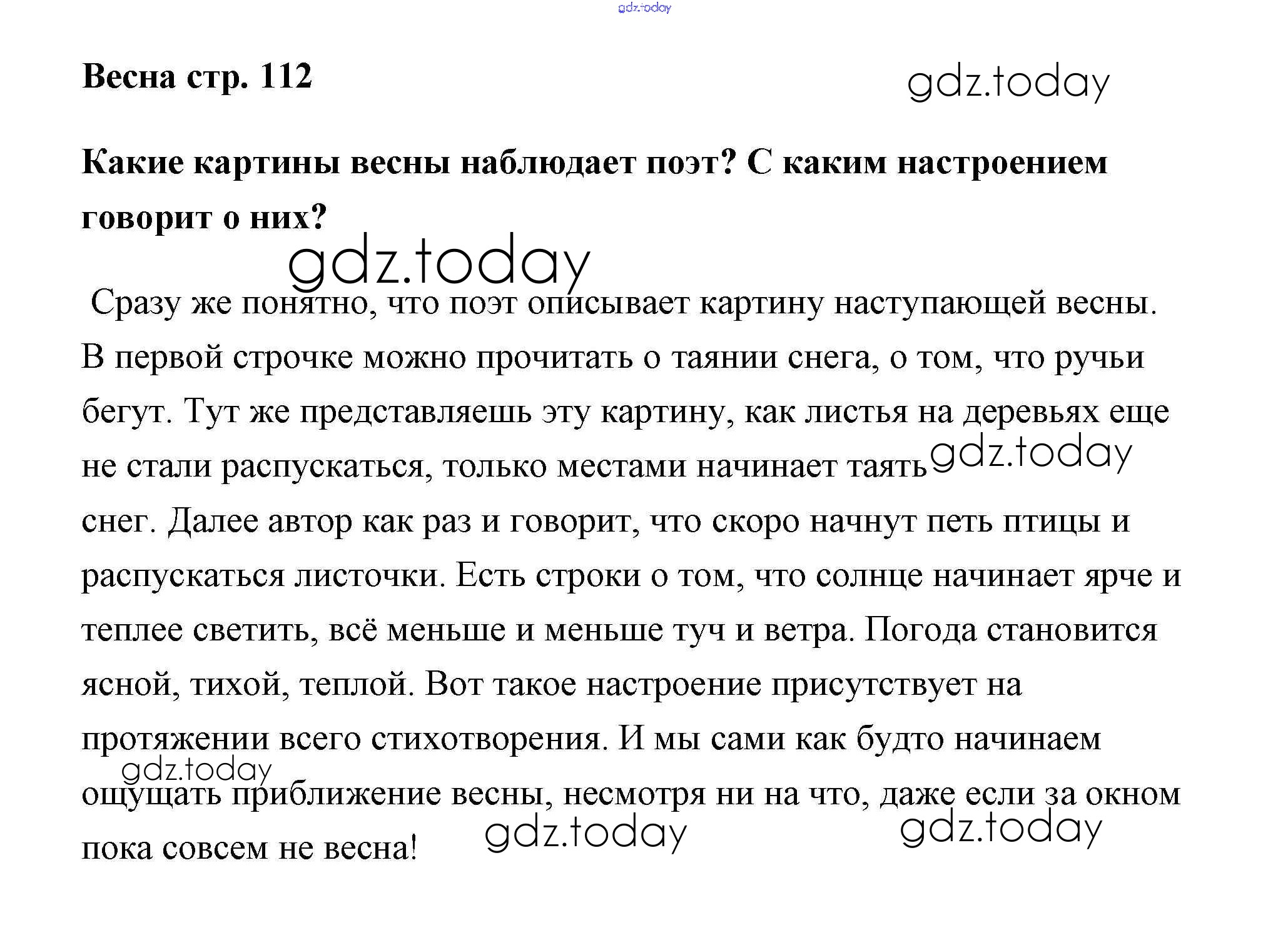 На страницах сайта gdz.today вы найдете учебный и вспомогательный материал, направленный на улучшения знаний школьной программы. ГДЗ - онлайн мир знаний Решение к части 2 (Страницы) 112 Учебнику по Литературному чтению для 2 класса Климанова, Горецкий Просвещение Школа России 2018