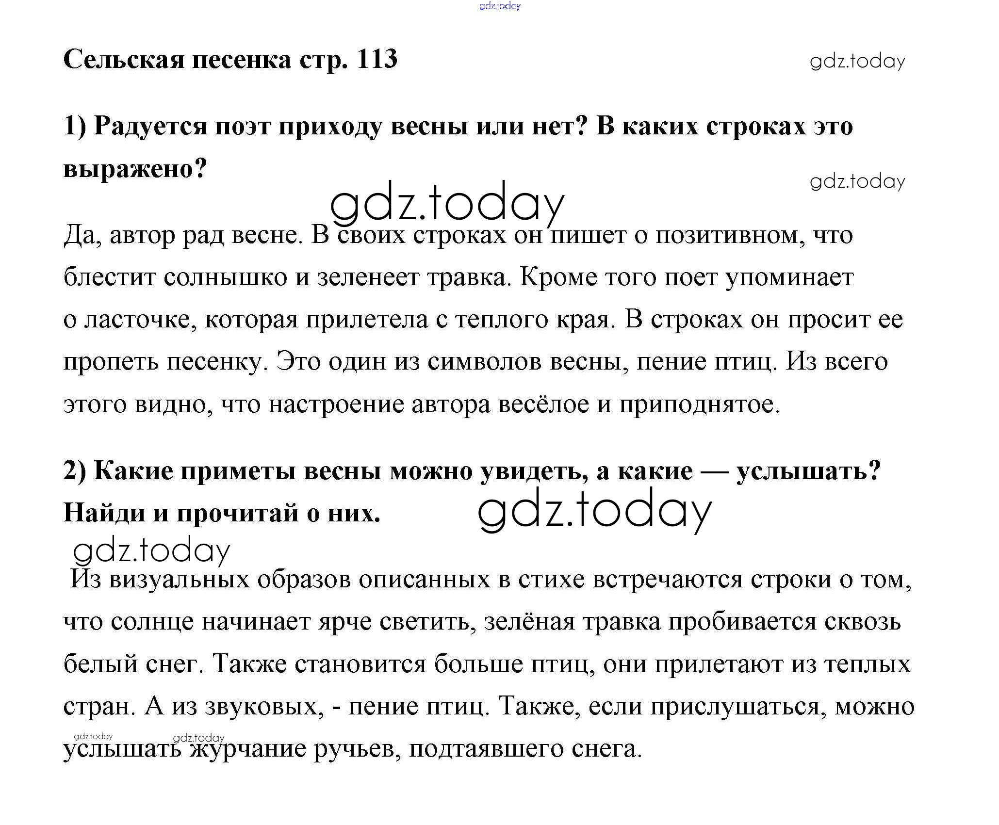Ответы к Решение к части 2 (Страницы) 113 Учебнику по Литературному чтению для 2 класса Климанова, Горецкий Просвещение Школа России 2018
