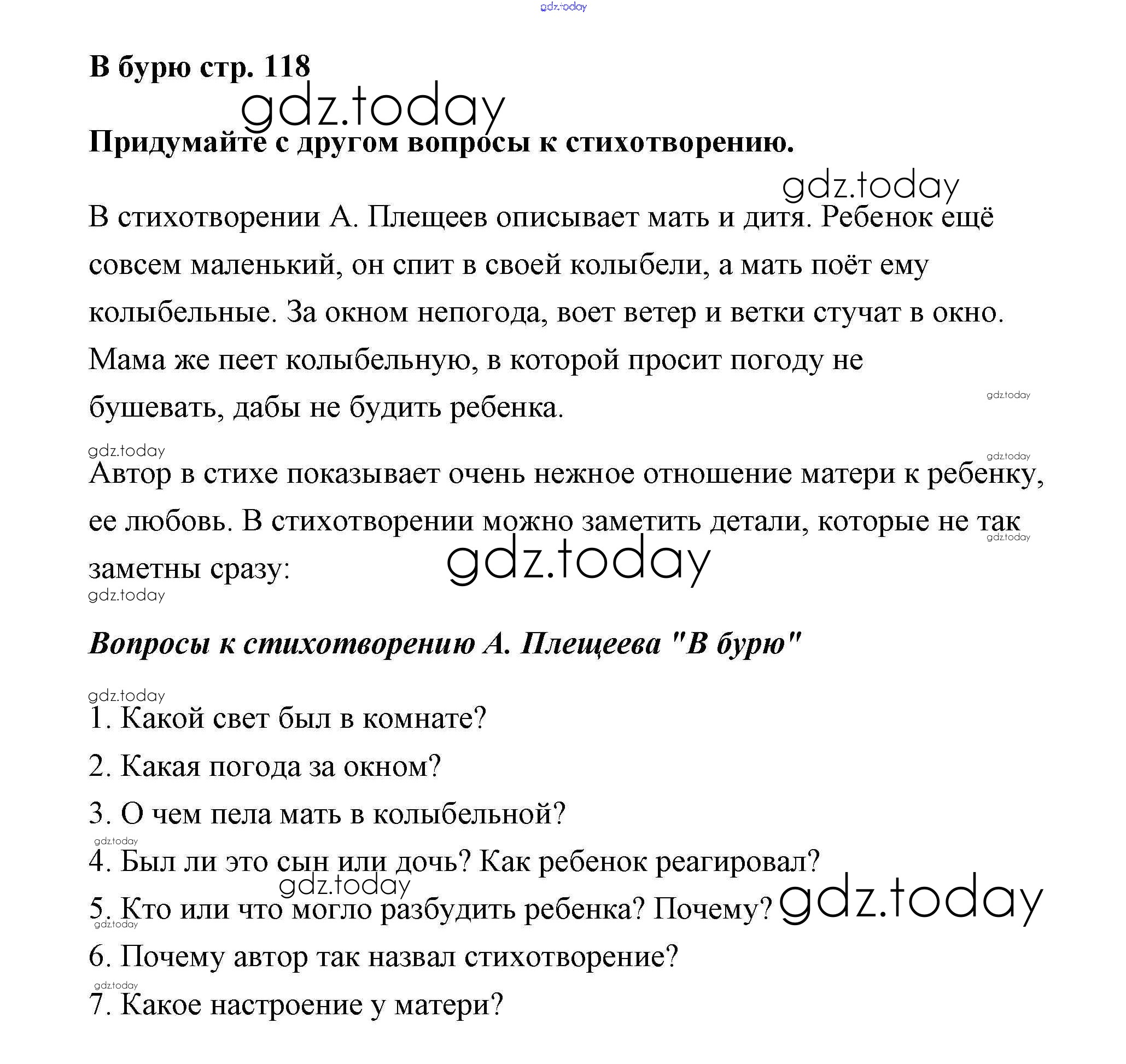 На страницах сайта gdz.today вы найдете учебный и вспомогательный материал, направленный на улучшения знаний школьной программы. ГДЗ - онлайн мир знаний Решение к части 2 (Страницы) 118 Учебнику по Литературному чтению для 2 класса Климанова, Горецкий Просвещение Школа России 2018