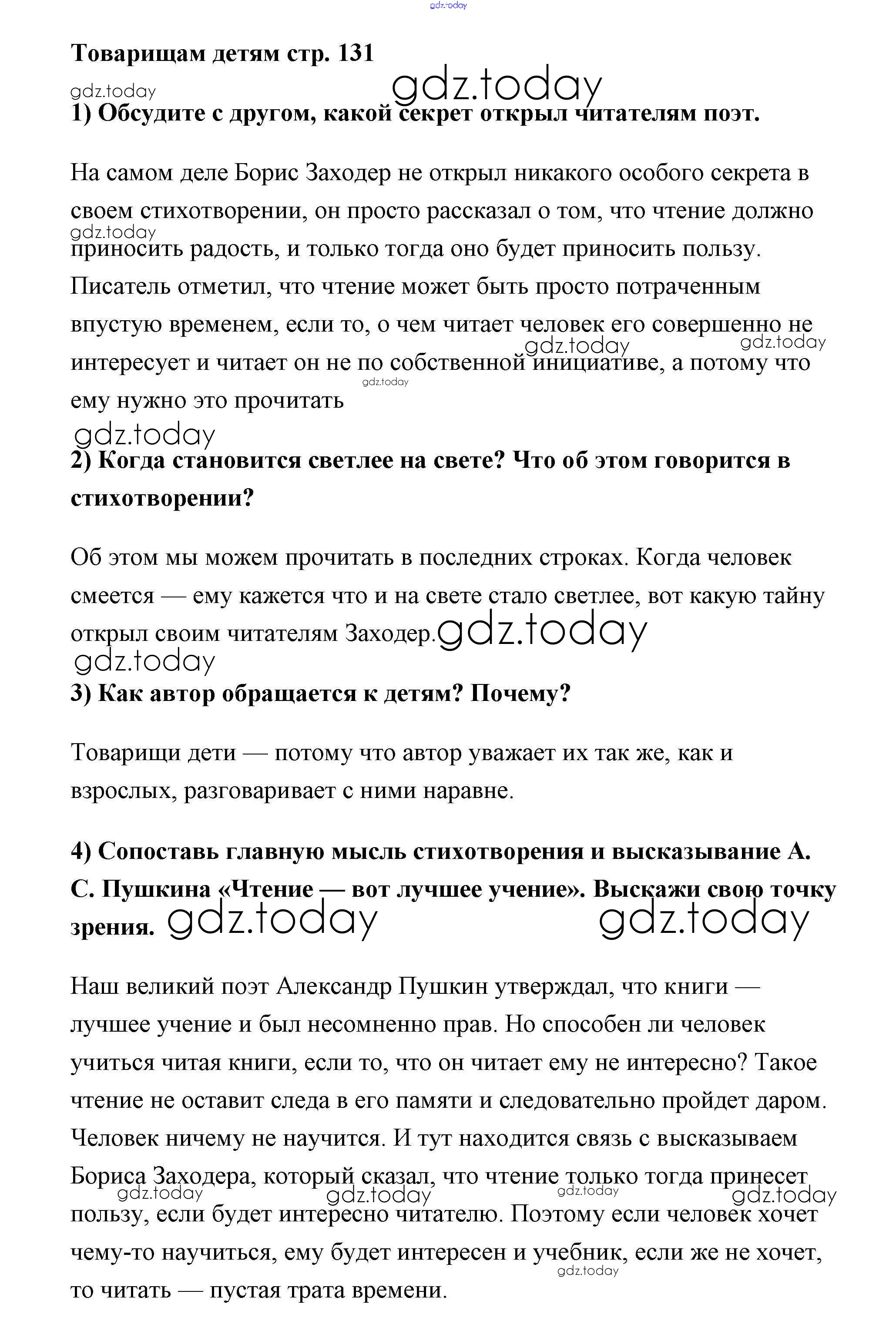 На страницах сайта gdz.today вы найдете учебный и вспомогательный материал, направленный на улучшения знаний школьной программы. ГДЗ - онлайн мир знаний Решение к части 2 (Страницы) 131 Учебнику по Литературному чтению для 2 класса Климанова, Горецкий Просвещение Школа России 2018