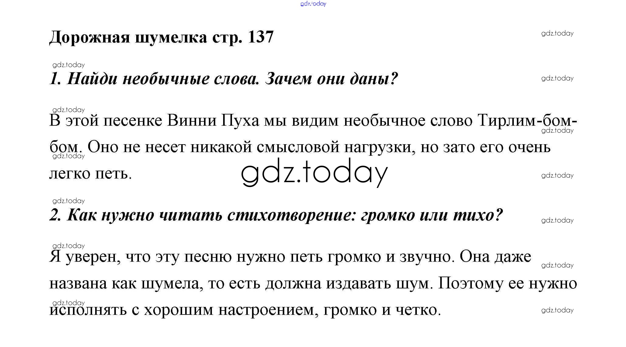 На страницах сайта gdz.today вы найдете учебный и вспомогательный материал, направленный на улучшения знаний школьной программы. ГДЗ - онлайн мир знаний Решение к части 2 (Страницы) 137 Учебнику по Литературному чтению для 2 класса Климанова, Горецкий Просвещение Школа России 2018