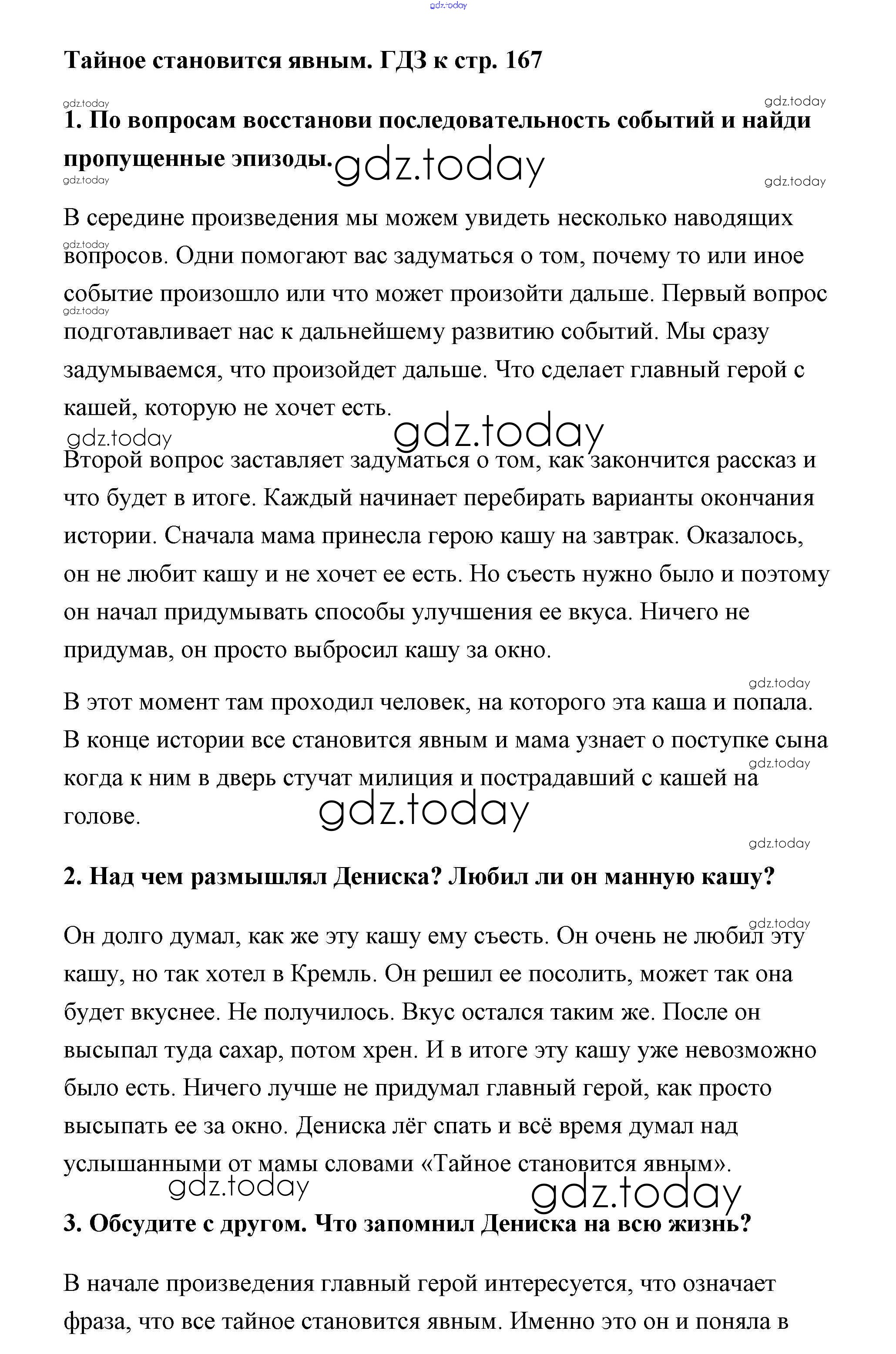 На страницах сайта gdz.today вы найдете учебный и вспомогательный материал, направленный на улучшения знаний школьной программы. ГДЗ - онлайн мир знаний Решение к части 2 (Страницы) 167 Учебнику по Литературному чтению для 2 класса Климанова, Горецкий Просвещение Школа России 2018