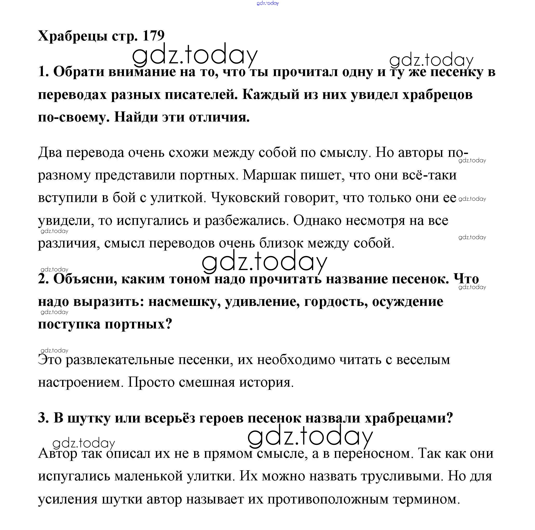 На страницах сайта gdz.today вы найдете учебный и вспомогательный материал, направленный на улучшения знаний школьной программы. ГДЗ - онлайн мир знаний Решение к части 2 (Страницы) 179 Учебнику по Литературному чтению для 2 класса Климанова, Горецкий Просвещение Школа России 2018