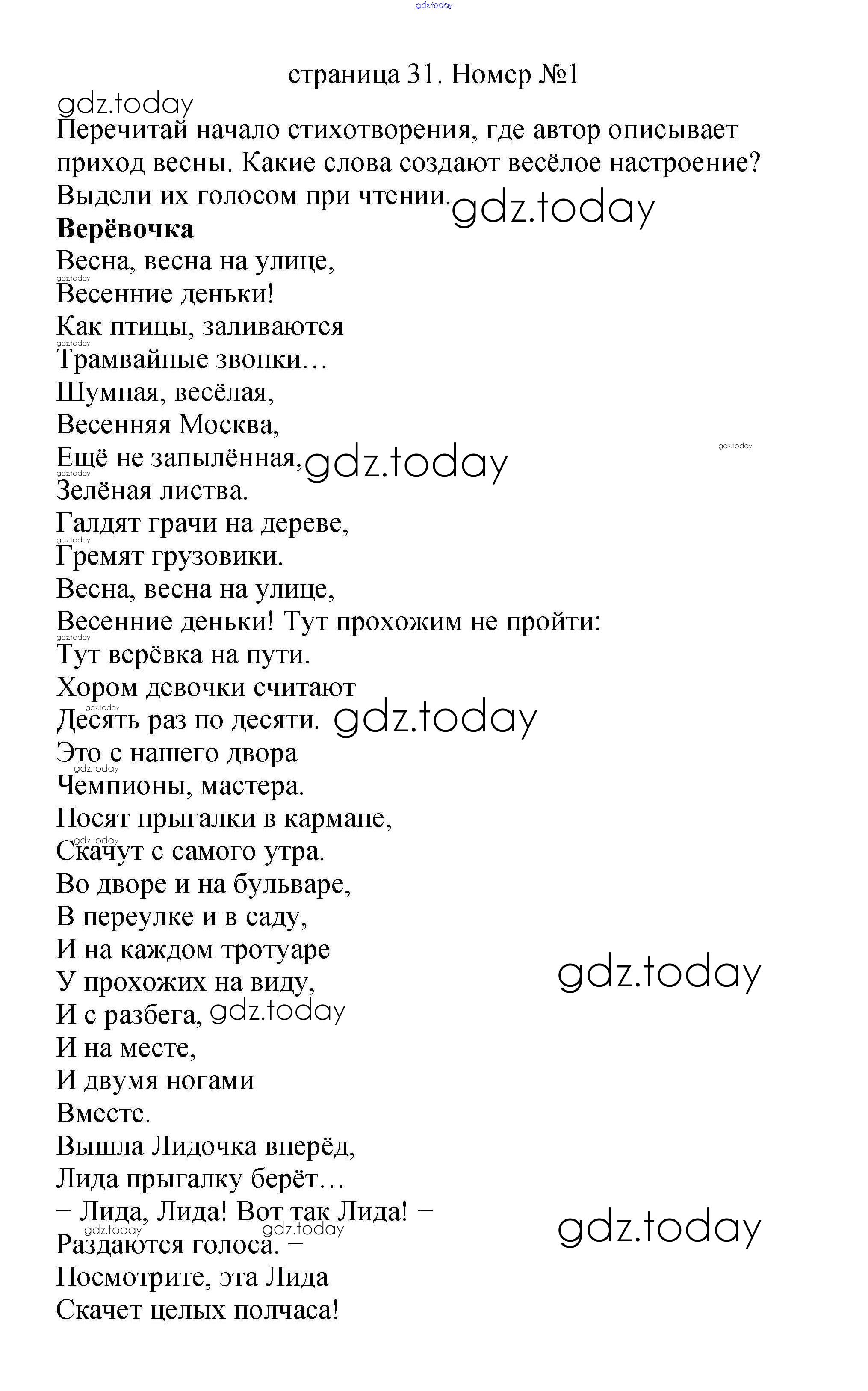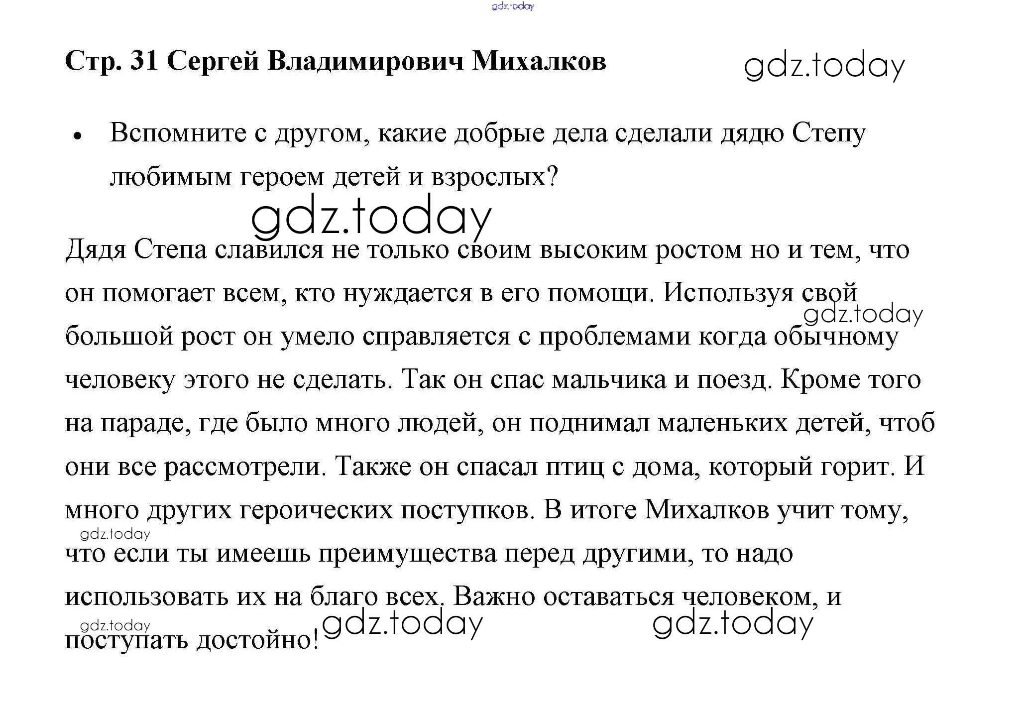 На страницах сайта gdz.today вы найдете учебный и вспомогательный материал, направленный на улучшения знаний школьной программы. ГДЗ - онлайн мир знаний Решение к части 2 (Страницы) 31 Учебнику по Литературному чтению для 2 класса Климанова, Горецкий Просвещение Школа России 2018