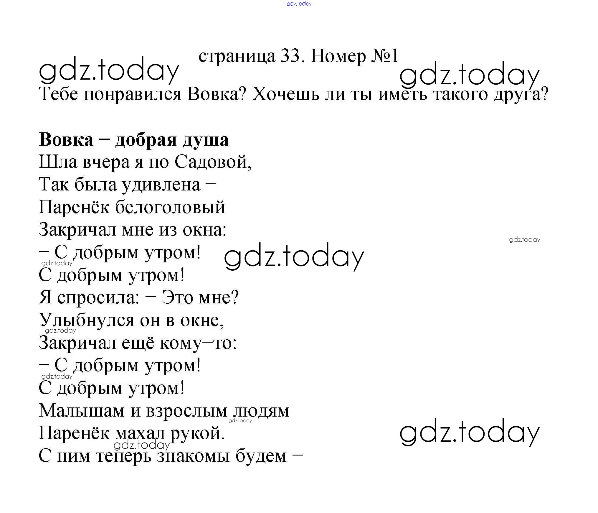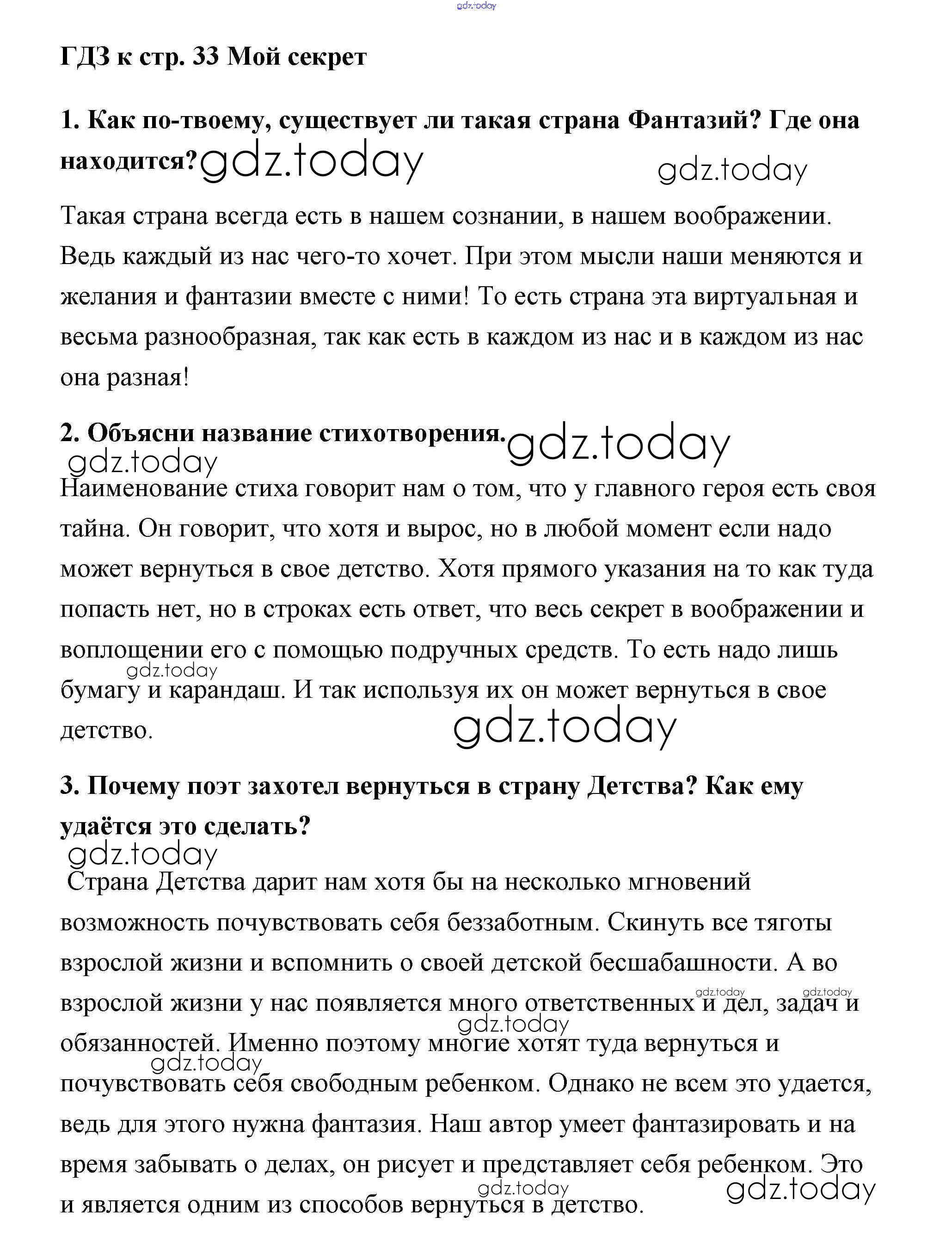На страницах сайта gdz.today вы найдете учебный и вспомогательный материал, направленный на улучшения знаний школьной программы. ГДЗ - онлайн мир знаний Решение к части 2 (Страницы) 33 Учебнику по Литературному чтению для 2 класса Климанова, Горецкий Просвещение Школа России 2018