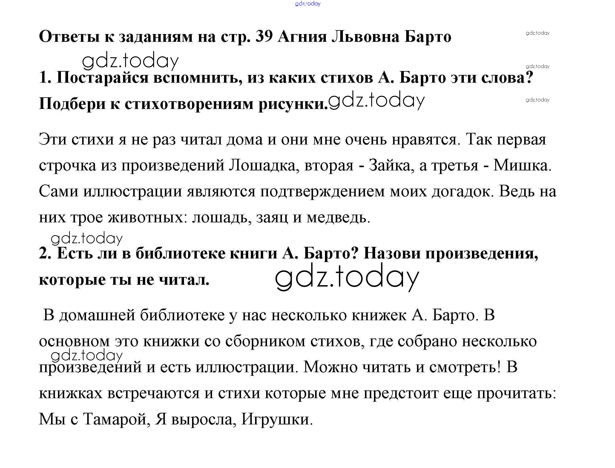 На страницах сайта gdz.today вы найдете учебный и вспомогательный материал, направленный на улучшения знаний школьной программы. ГДЗ - онлайн мир знаний Решение к части 2 (Страницы) 39 Учебнику по Литературному чтению для 2 класса Климанова, Горецкий Просвещение Школа России 2018