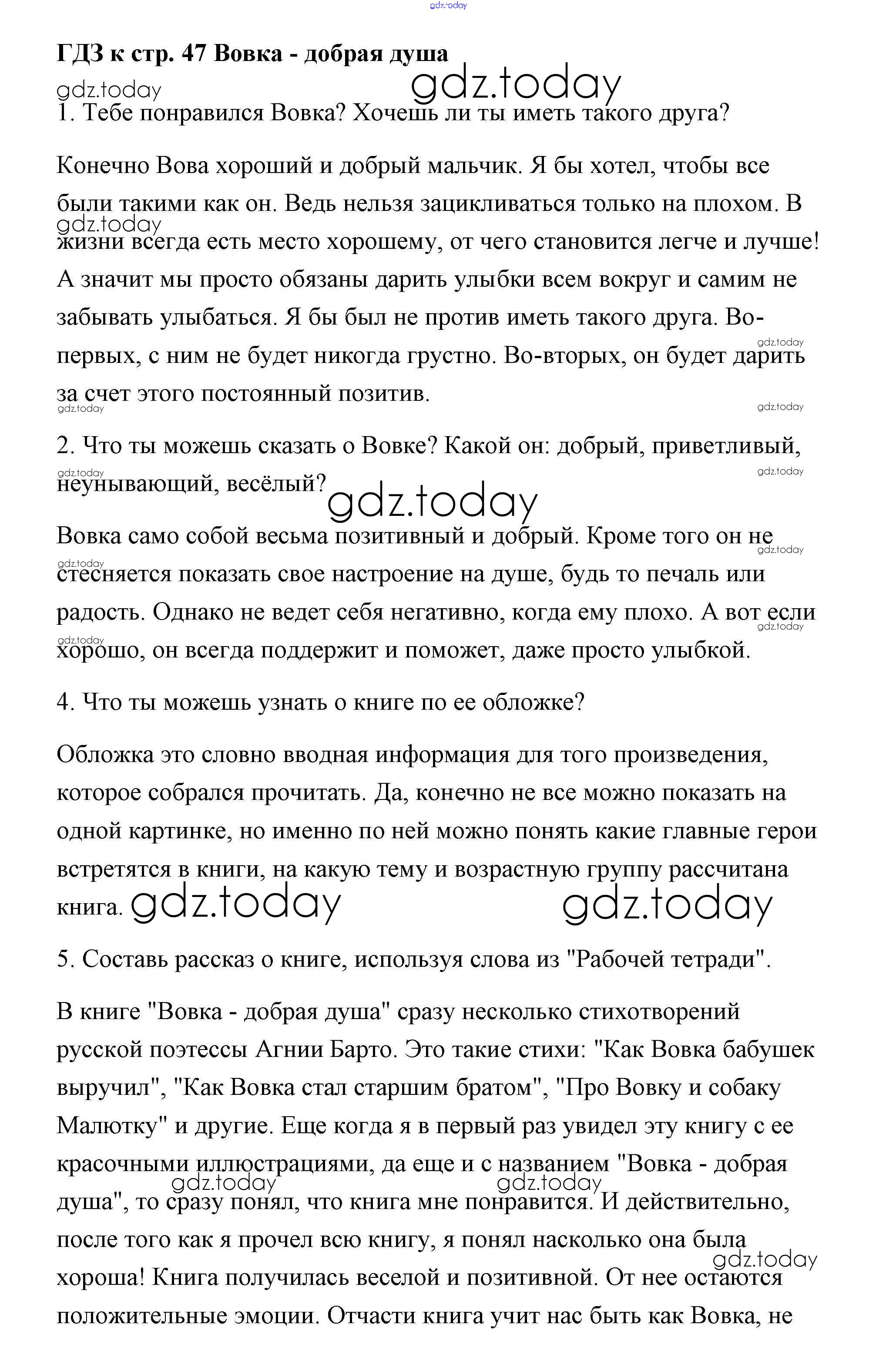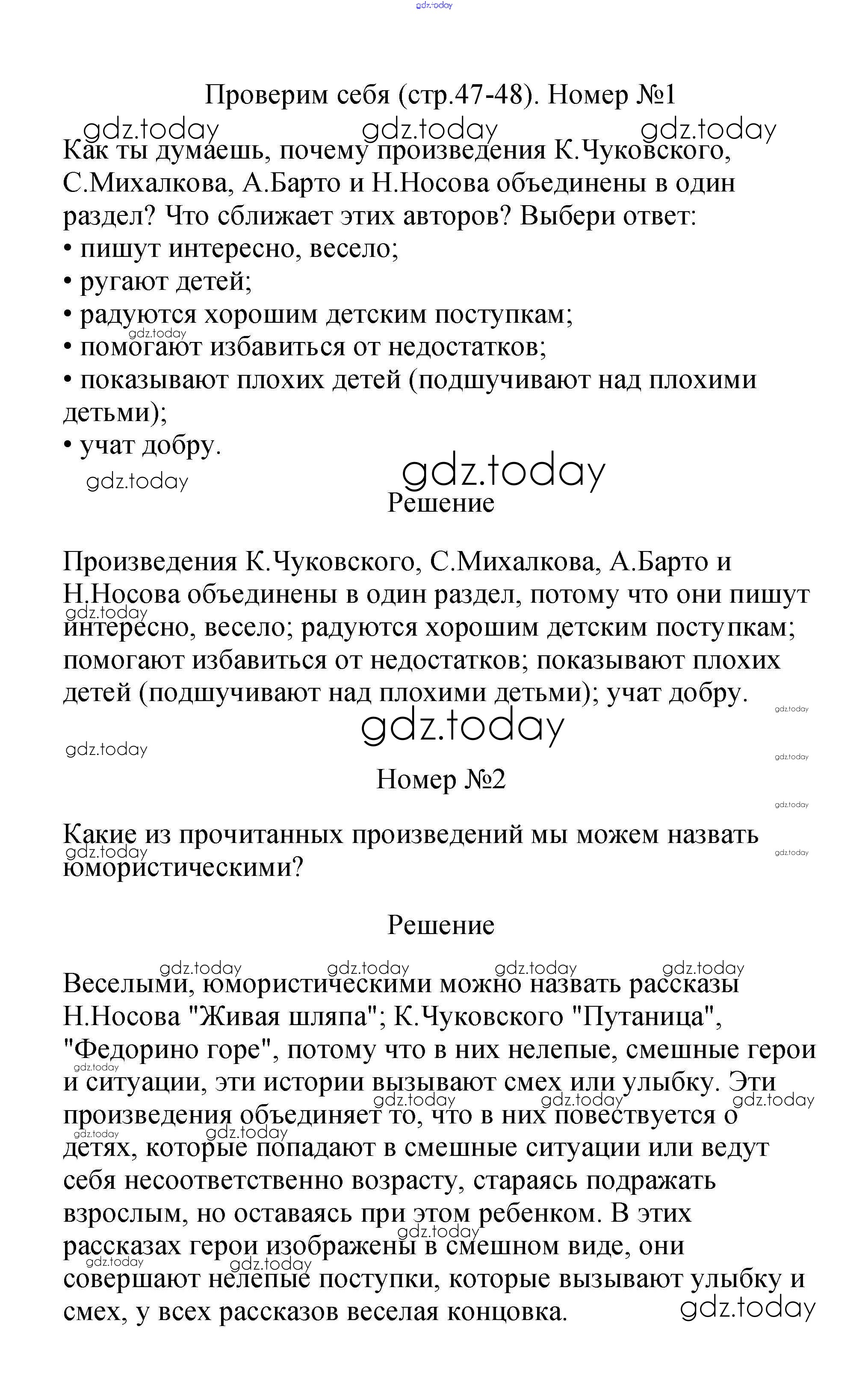 На страницах сайта gdz.today вы найдете учебный и вспомогательный материал, направленный на улучшения знаний школьной программы. ГДЗ - онлайн мир знаний Решение к части 2 (Страницы) 47 Учебнику по Литературному чтению для 2 класса Климанова, Горецкий Просвещение Школа России 2018