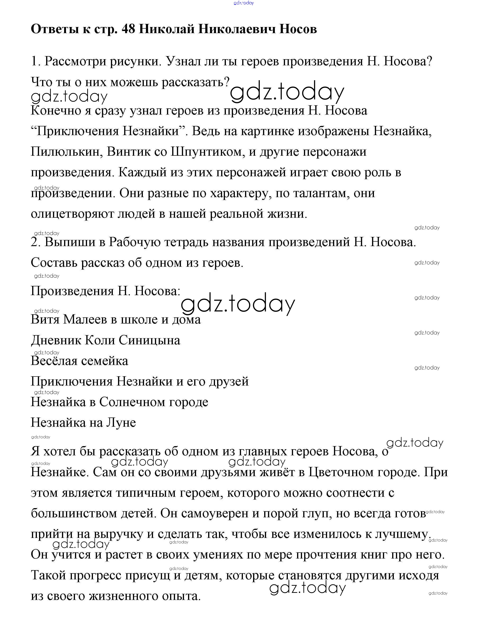 На страницах сайта gdz.today вы найдете учебный и вспомогательный материал, направленный на улучшения знаний школьной программы. ГДЗ - онлайн мир знаний Решение к части 2 (Страницы) 48 Учебнику по Литературному чтению для 2 класса Климанова, Горецкий Просвещение Школа России 2018