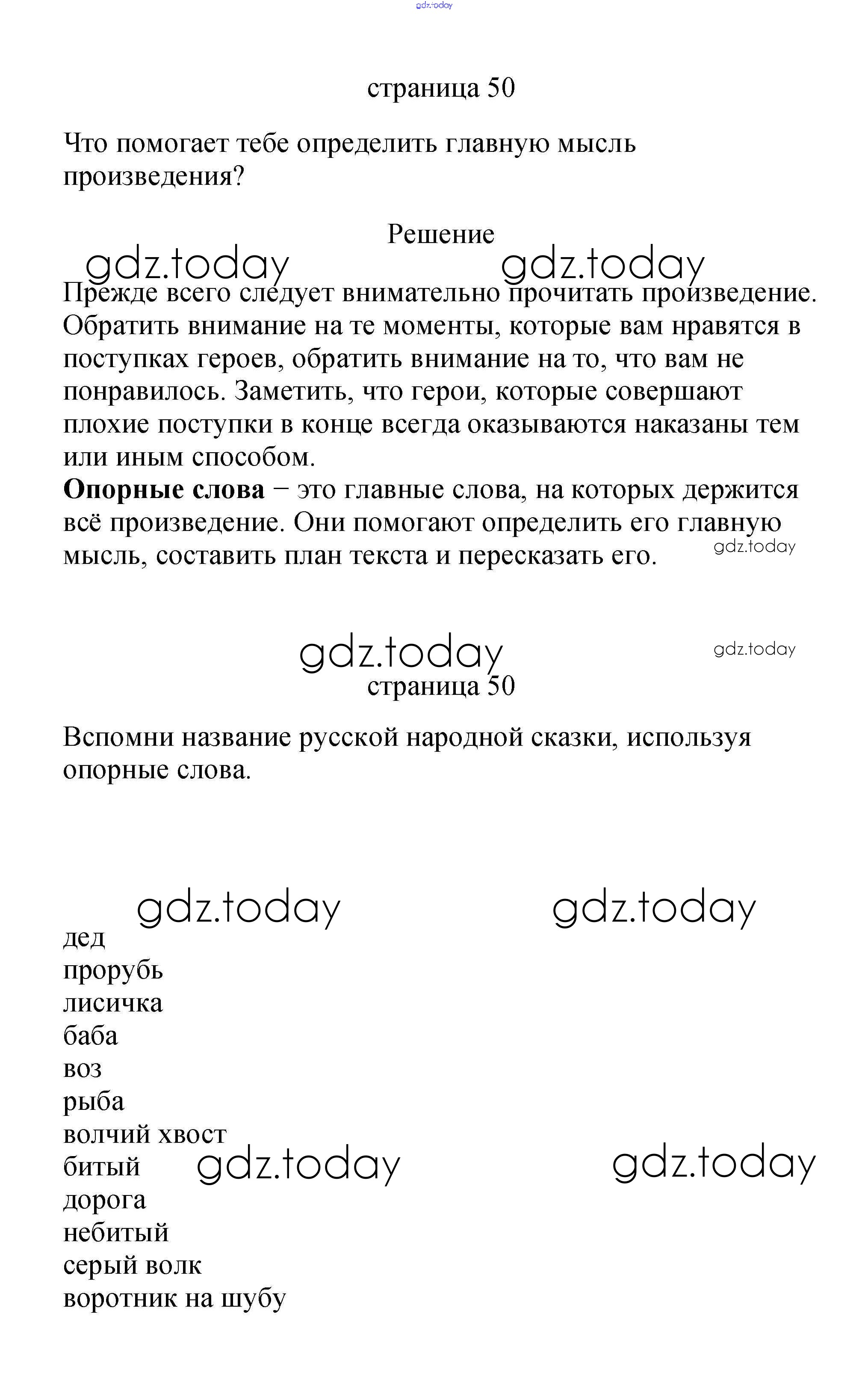 На страницах сайта gdz.today вы найдете учебный и вспомогательный материал, направленный на улучшения знаний школьной программы. ГДЗ - онлайн мир знаний Решение к части 2 (Страницы) 50 Учебнику по Литературному чтению для 2 класса Климанова, Горецкий Просвещение Школа России 2018