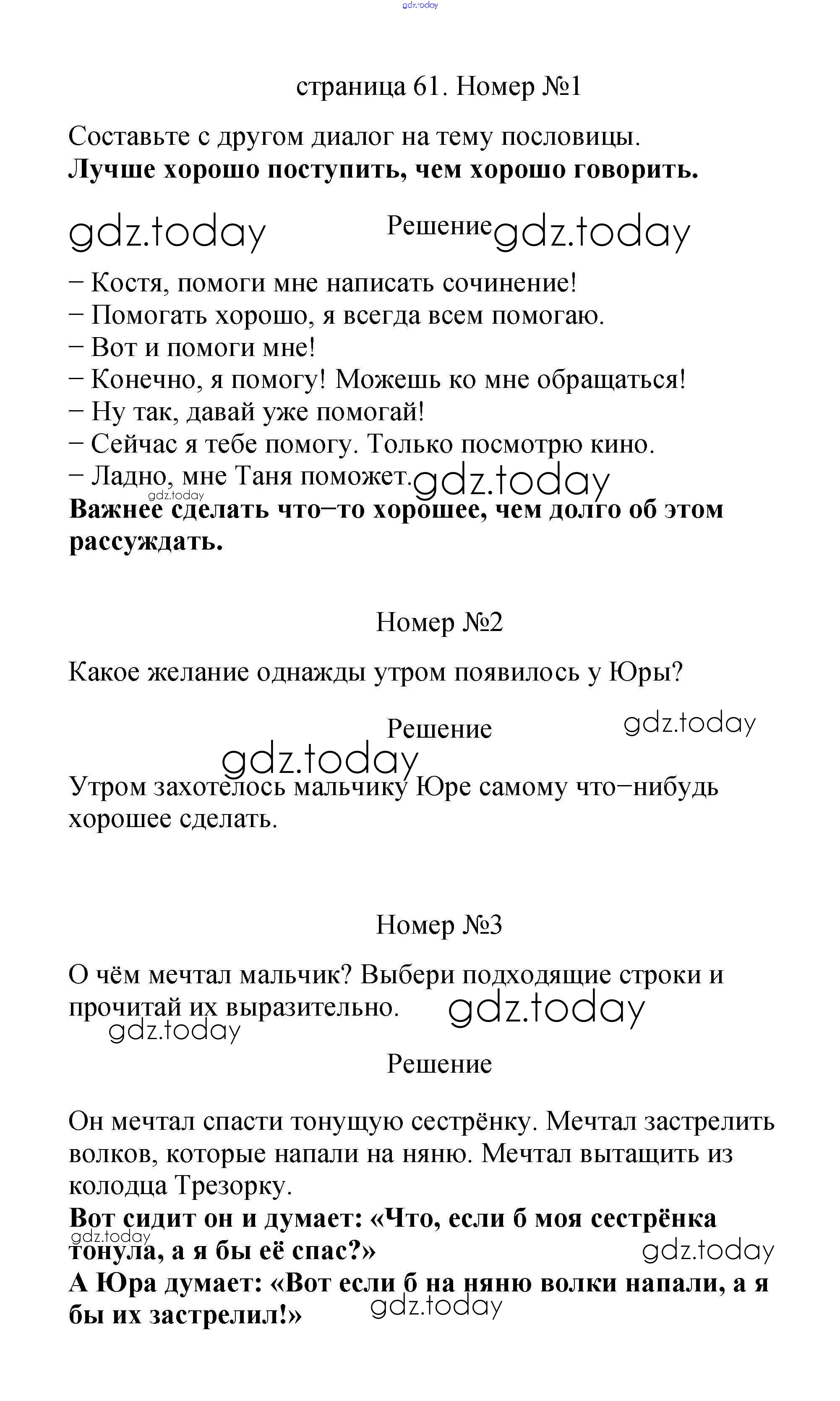 Ответы к Решение к части 2 (Страницы) 61 Учебнику по Литературному чтению для 2 класса Климанова, Горецкий Просвещение Школа России 2018
