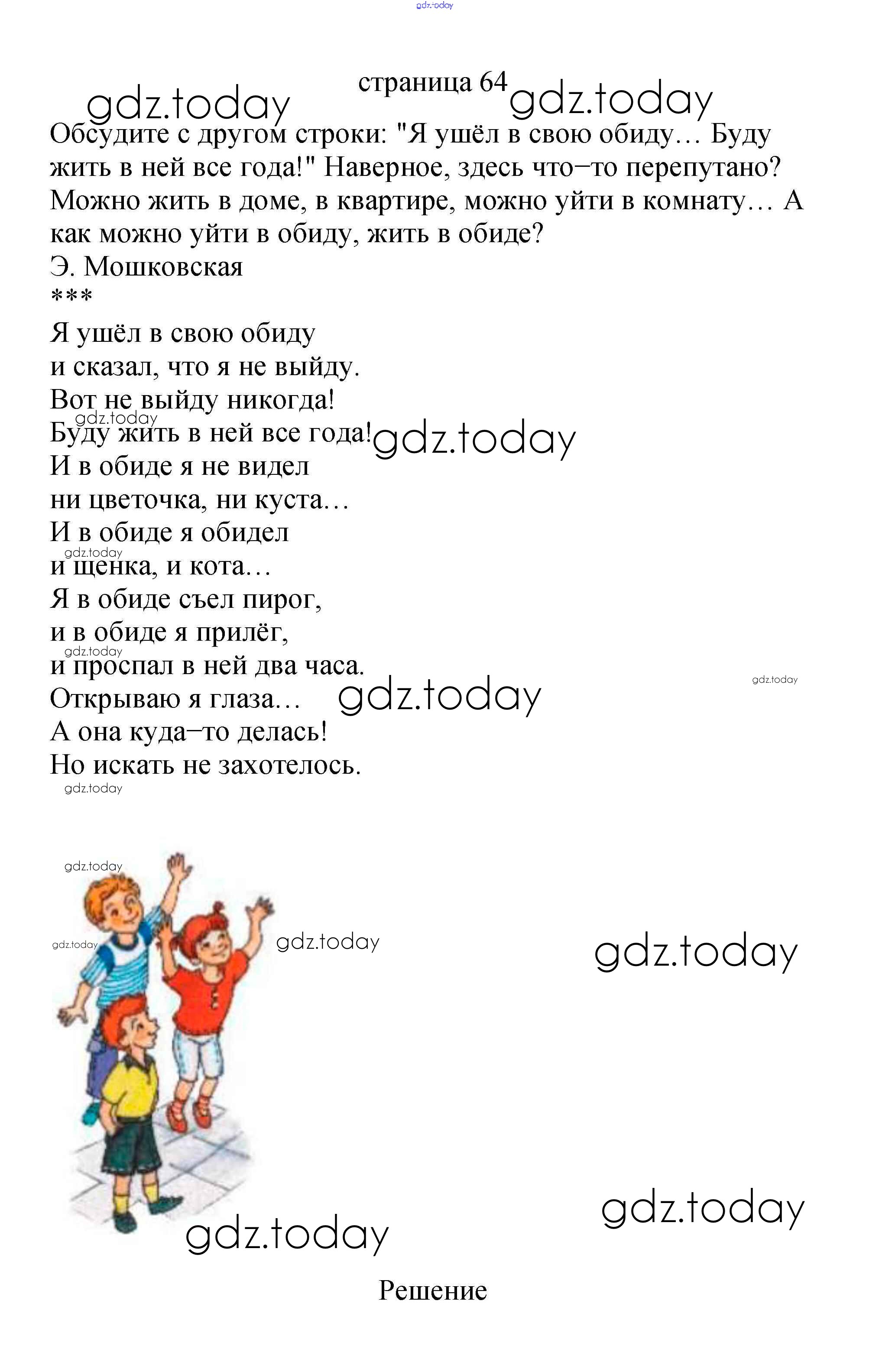 На страницах сайта gdz.today вы найдете учебный и вспомогательный материал, направленный на улучшения знаний школьной программы. ГДЗ - онлайн мир знаний Решение к части 2 (Страницы) 64 Учебнику по Литературному чтению для 2 класса Климанова, Горецкий Просвещение Школа России 2018