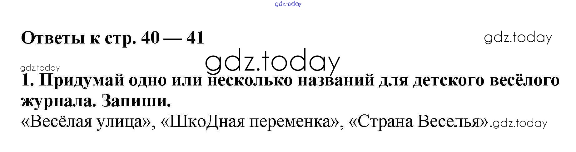На страницах сайта gdz.today вы найдете учебный и вспомогательный материал, направленный на улучшения знаний школьной программы. ГДЗ - онлайн мир знаний Решение к теме «Из детских журналов» (страницы 40-41) 1 Рабочей тетради по Литературному чтению для 2 класса Кутявина ВАКО 2018