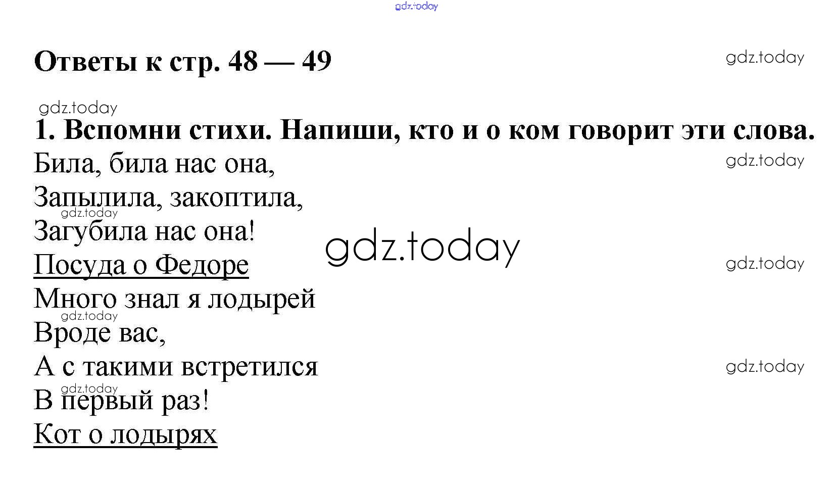 На страницах сайта gdz.today вы найдете учебный и вспомогательный материал, направленный на улучшения знаний школьной программы. ГДЗ - онлайн мир знаний Решение к теме «Писатели — детям» (страницы 48-49) 1 Рабочей тетради по Литературному чтению для 2 класса Кутявина ВАКО 2018